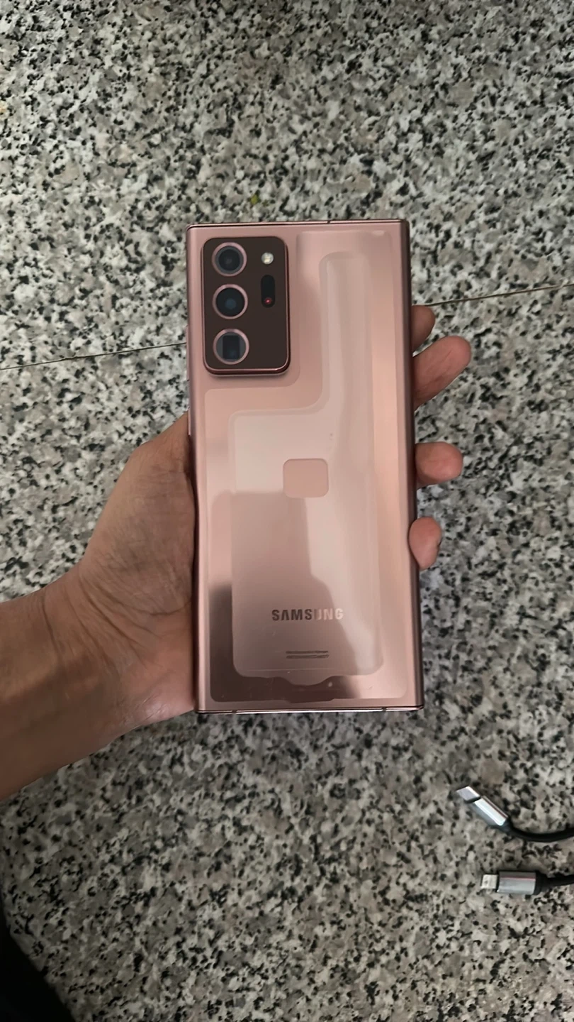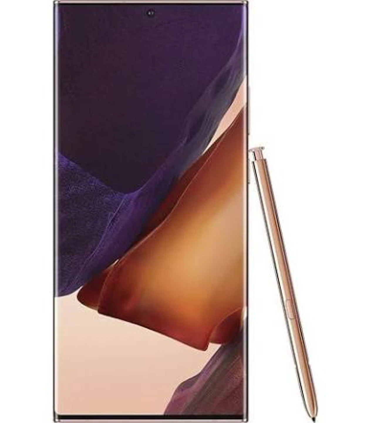 Samsung Galaxy Note 20 Ultra 5G smartphone in a rose gold colour. Includes the S Pen stylus. It's a powerful device with a great camera system!
