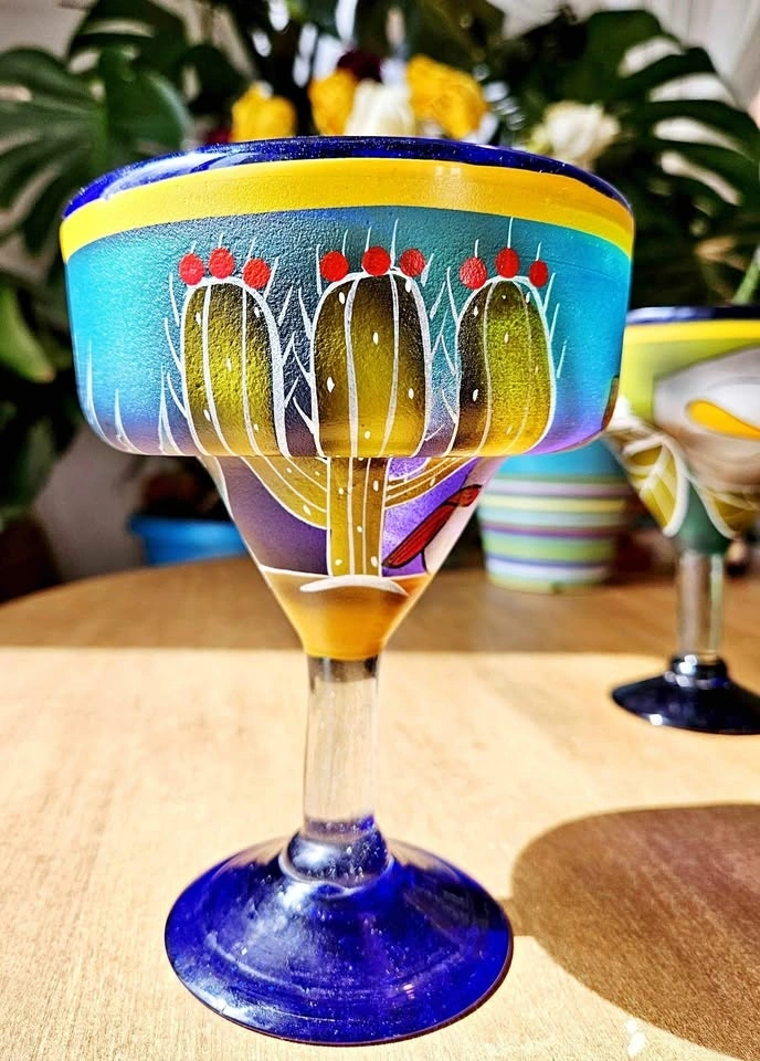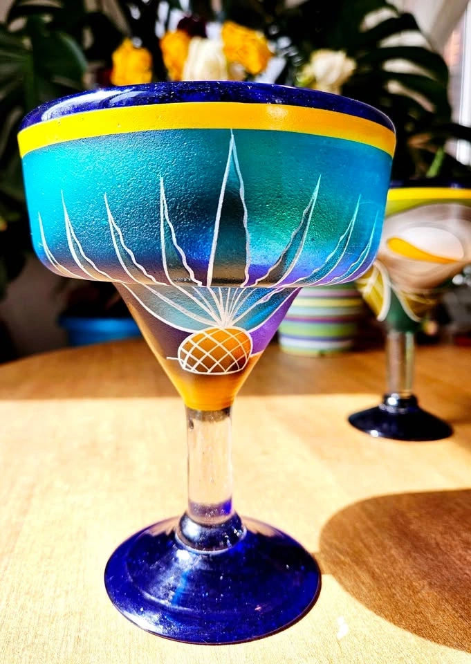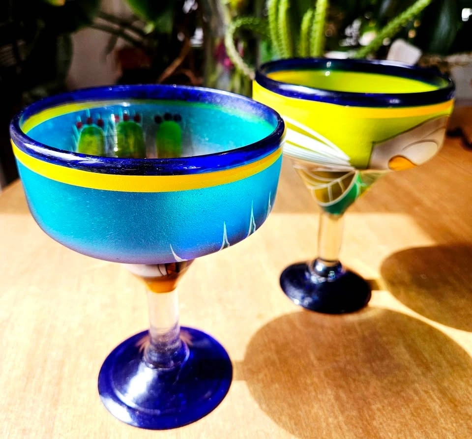 Hand-Painted Cobalt Blue Glass Set - Perfect for Patio