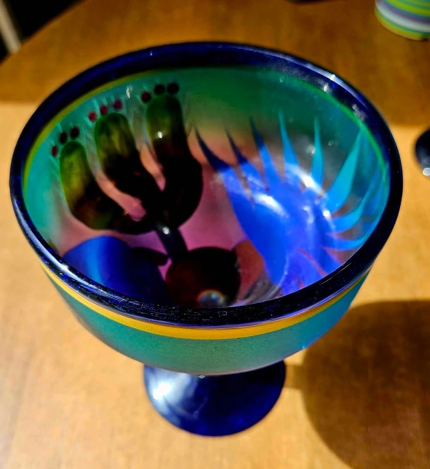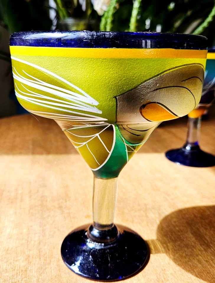 Hand-Painted Cobalt Blue Glass Set - Perfect for Patio