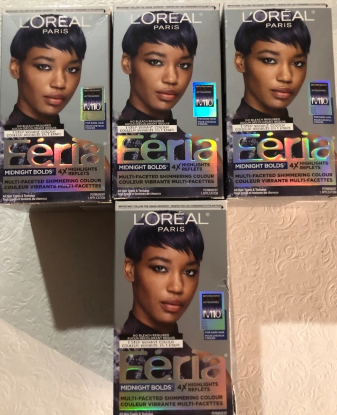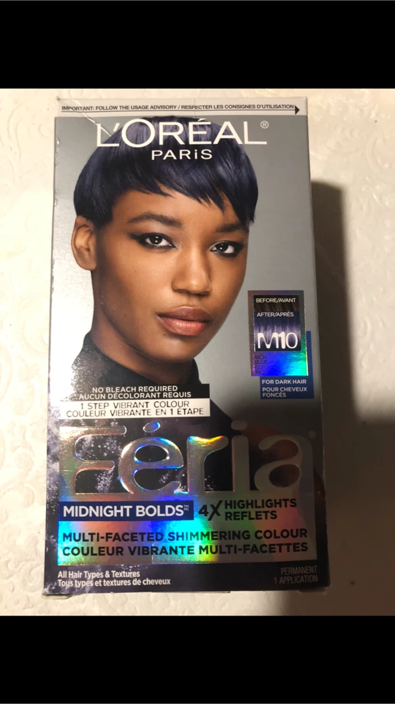 L'Oréal Paris Feria Midnight Bolds hair colour rich blue. This multi-faceted shimmering colour offers 4x highlights.