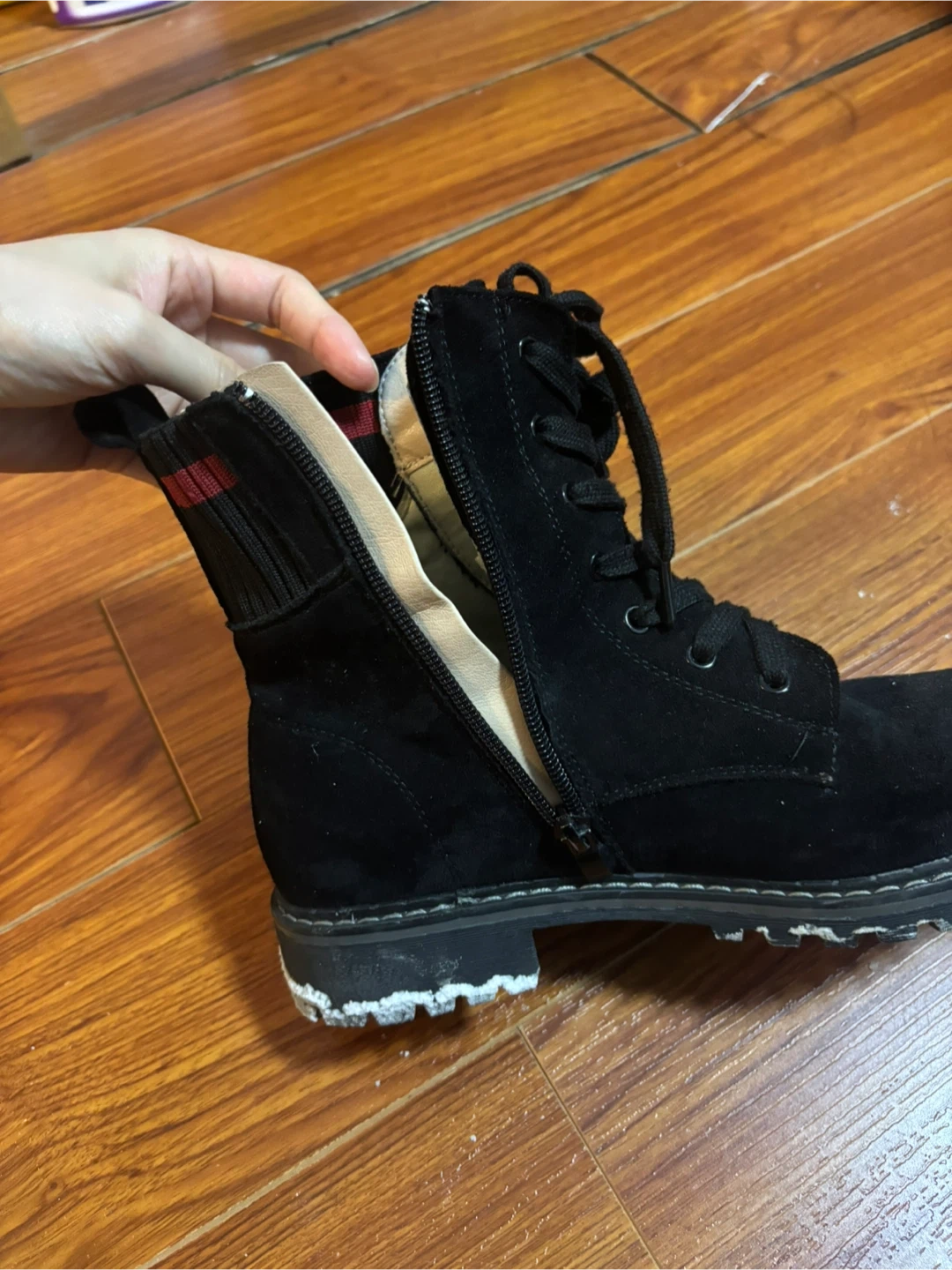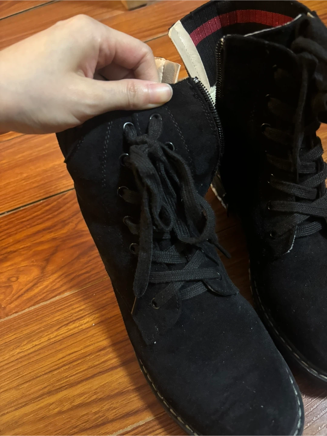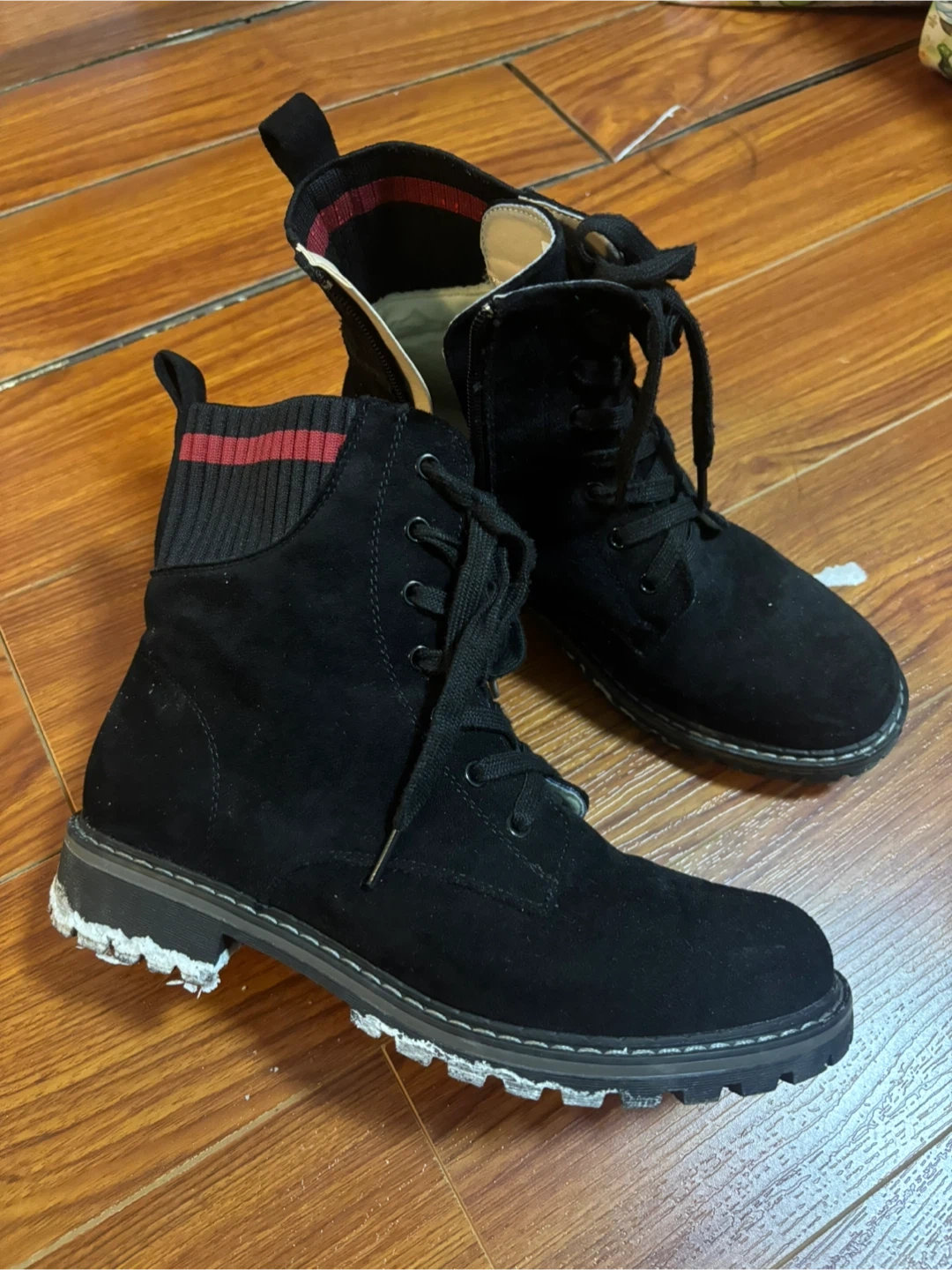 These black ankle boots are a US size 9. They feature laces and a side zipper for easy on and off. The boots have a durable sole perfect for everyday wear - spring/fall or even easy day in winter. Barely worn less than 5 times πŸ“Pick-up at driveway near Donmils/McNicol intersection πŸ’΅ Cash only