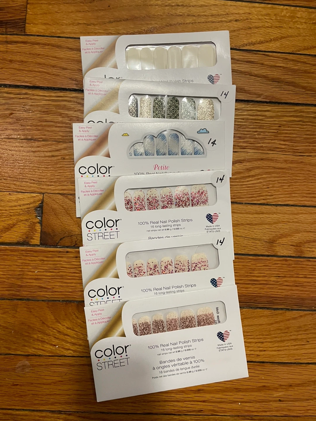 Buy & SellColor Street Nail Polish Strips Set (6 Styles)Color Street Nail Polish Strips Set (6 Styles)$15Set of 6 Color Street 100% Real Nail Polish Strips. Each pack contains 16 long-lasting strips. Easy to peel and apply. Made in the USA.ConditionNewBrandColor StreetWHERE TO MEET332 E 95th StView MapSELLERverifiedAliciaUpper East Side23721 reviews0 chats·0 favorites·6 viewsSEND CHAT TO SELLERHi Alicia! I’m interested in your listing.Hi Alicia! I’m interested in your listing.Get the Karrot app to chatSign In to chat