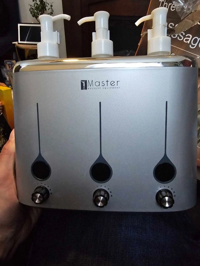 Never used. Master Massage Gen-II Oil Warmer. This Master Massage Oil Warmer simplifies the process with precise heating and temperature control. The digital display shows the exact temperature, ensuring your products reach the perfect warmth every time! Designed for quick and hassle-free heating, this oil warmer fully heats your products in just 20 minutes. With an adjustable dial ranging from 104°F to 140°F, simply fill the bottles, insert them into the warmer, and turn it on for fast results! The 3-bottle Massage Oil Warmer can hold three different types of lotions or oils, heating each to its own ideal temperature. This convenient feature allows you to personalize the massage experience while saving space. Warming massage oil is effortless with its sleek, modern design and durable ABS plastic construction. The robust pumps dispense the perfect amount of product, and the unit plugs in for use in any room. Plus, enjoy peace of mind with an auto safety shutoff after 8 hours. Whether you’re a professional massage therapist or a home user, this oil warmer is essential for achieving the perfect temperature every time. Elevate your massage experience with this convenient and reliable tool! For Sale By: Owner