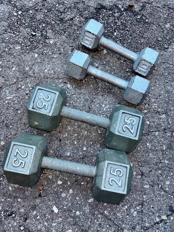 Iron Hex Dumbbells Weights 25lb and 10lbs
