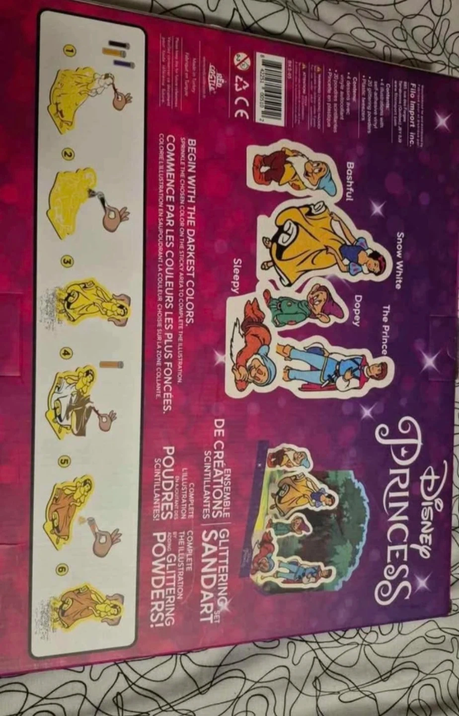 This Disney Princess Glittering Sand Art kit lets you create sparkly art with your favourite characters. It includes 5 different "in 1" colour sets, perfect for young artists. Recommended for ages 3 and up!