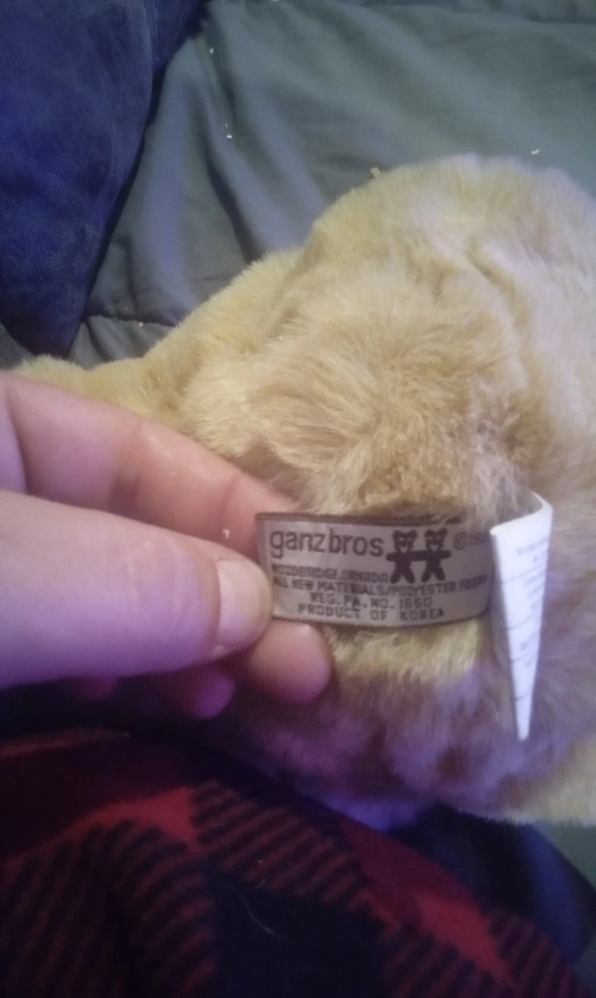This is a Heritage Collection teddy bear from Ganz Bros. It's made with polyester fibres. This plush toy is a classic bear design.