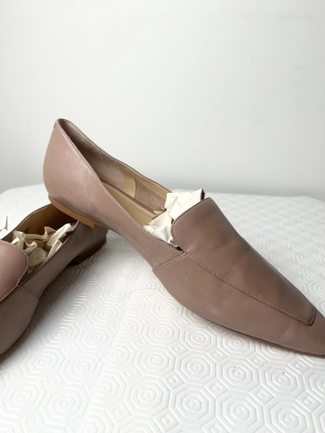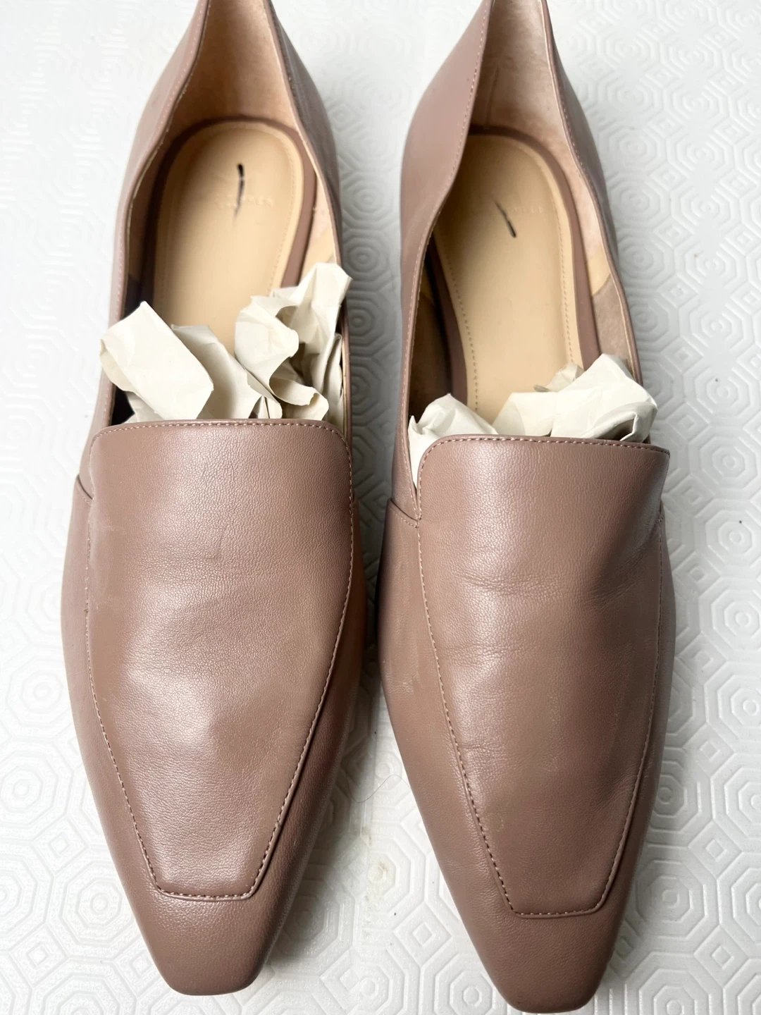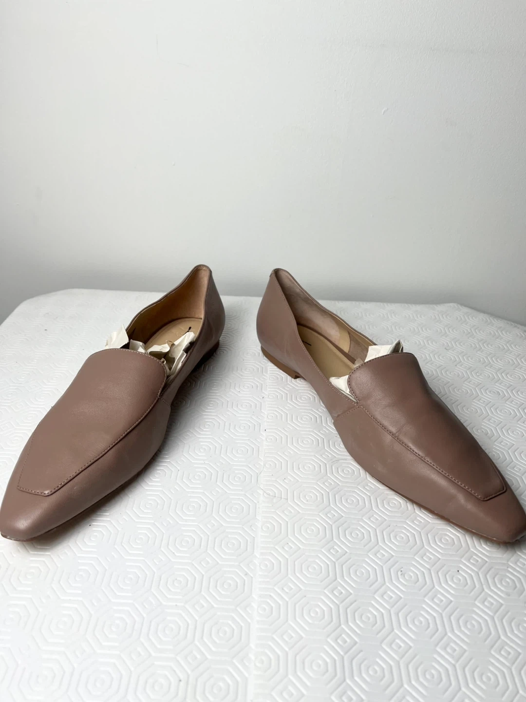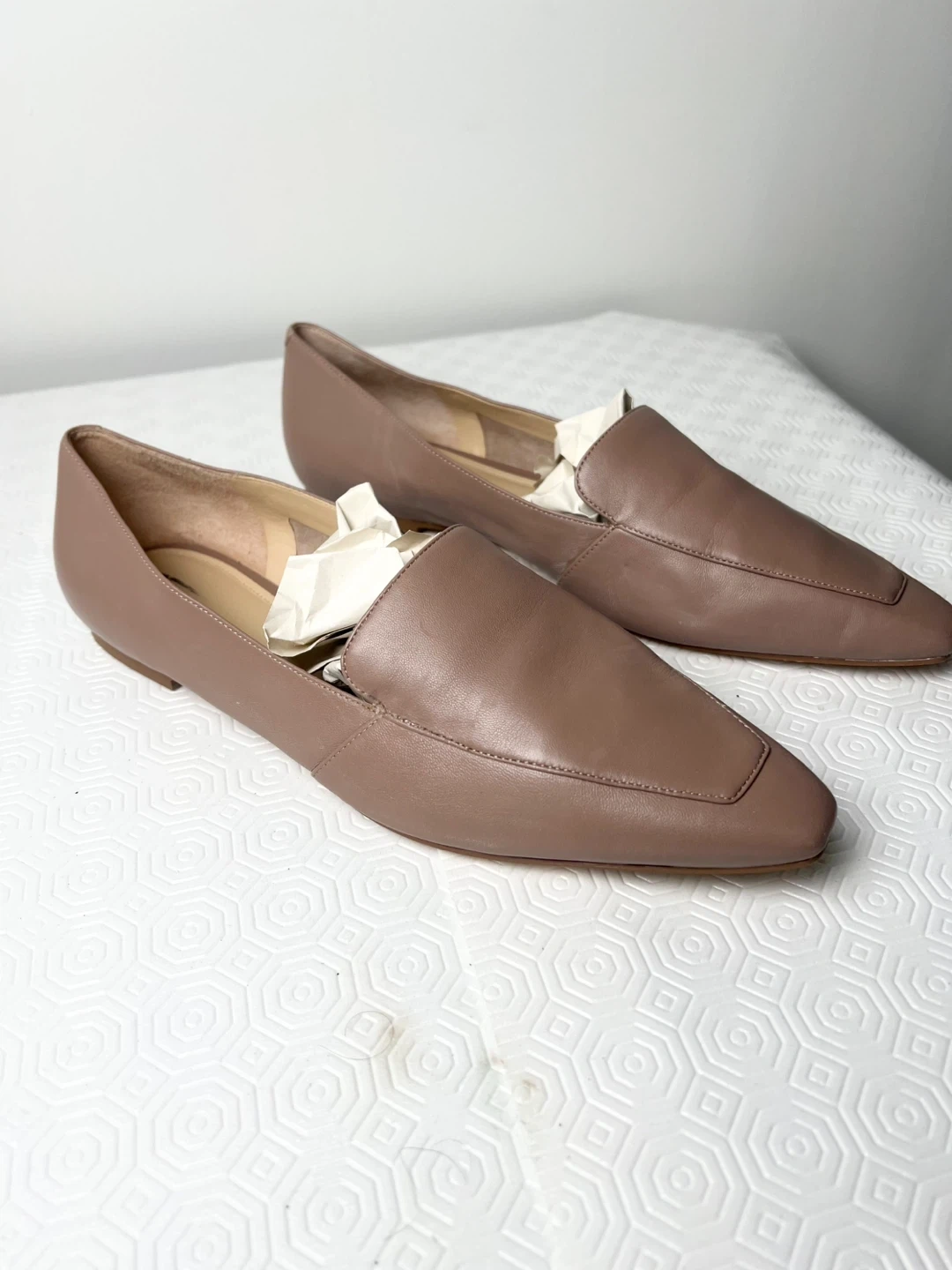 Marc Fisher LTD women's loafers in a tan leather. Size is 9M. They're stylish and comfortable flat shoes.