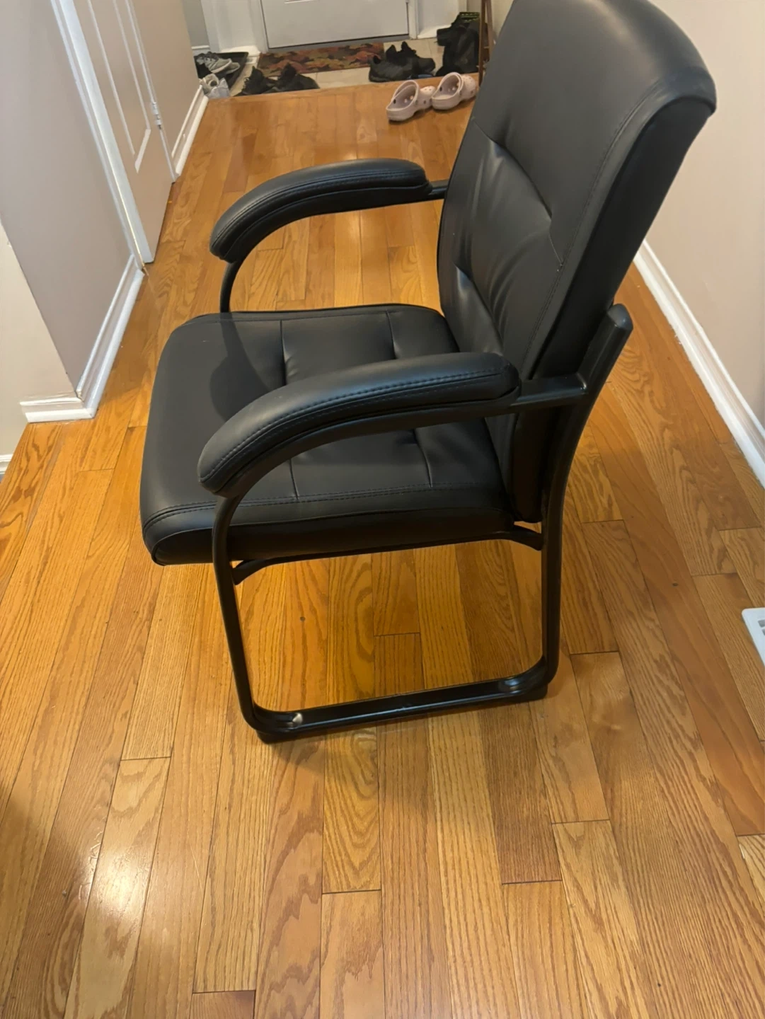 Buy & SellBlack Faux Leather Office ChairBlack Faux Leather Office Chair$20This is a black faux leather office chair. It has padded armrests and a comfortable seat. The chair's frame is black metal.WHERE TO MEETCheck LocationView MapSELLERRohanCredit Valley392 reviews3 chats·1 favorites·10 viewsSEND CHAT TO SELLERHi Rohan! I’m interested in your listing.Hi Rohan! I’m interested in your listing.Get the Karrot app to chatSign In to chat