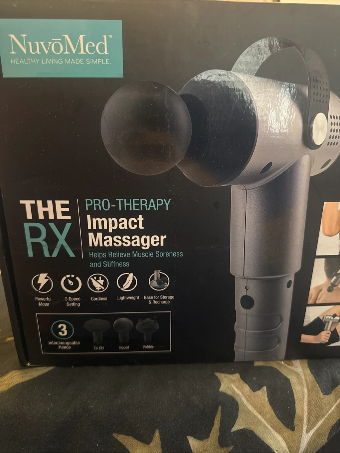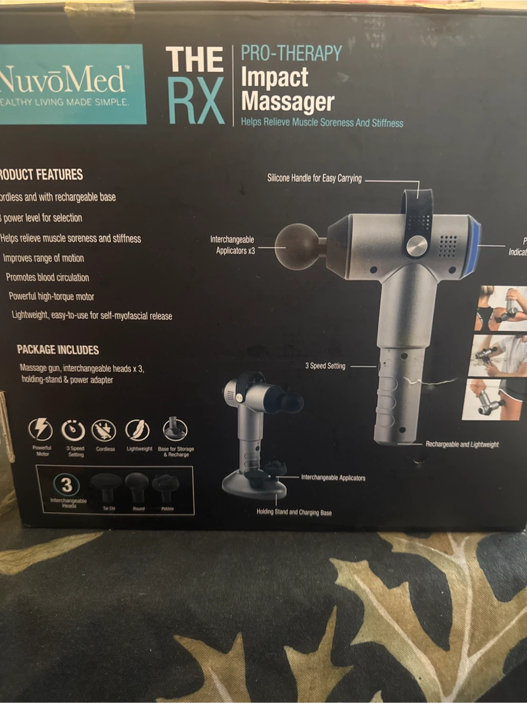 This NuvoMed PRO-THERAPY RX Impact Massager helps relieve muscle soreness and stiffness. It features a powerful motor, 3 speed settings, and comes with 3 interchangeable applicators. It's cordless and includes a base for storage and recharge.