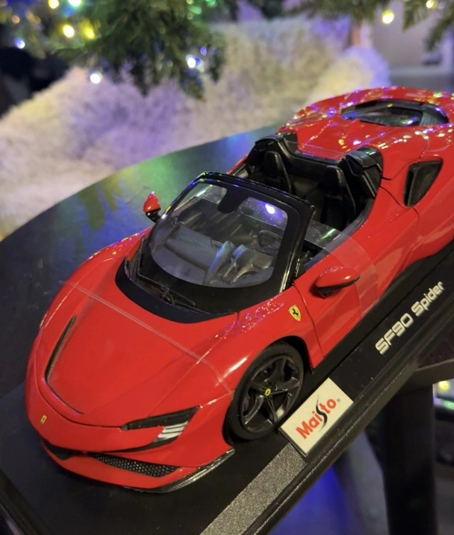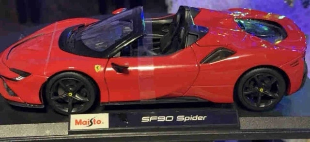 Selling a new, Maisto 1:18 scale model of the Ferrari SF90 Spider Special Edition diecast car, a perfect addition to any car enthusiast's collection or a delightful display piece. The intricate details and vibrant finish capture the essence of this iconic sports car. It has been kept in its original packaging and is in mint condition.