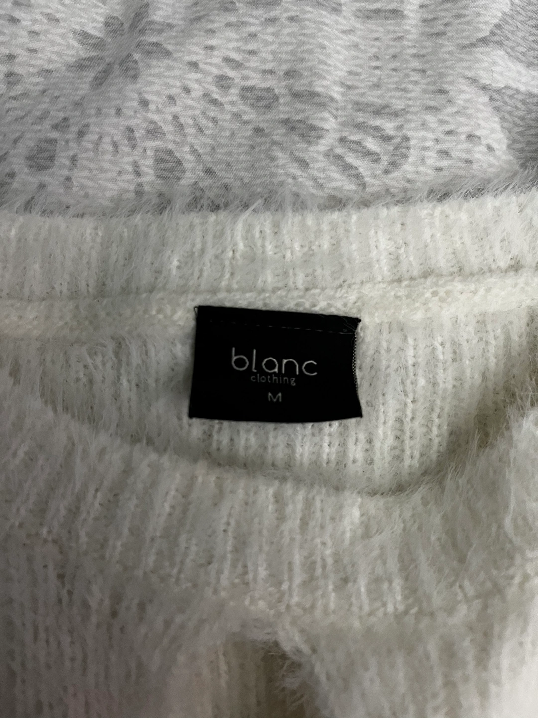 Blanc Clothing White Fuzzy Cardigan Sweater with Heart Decals