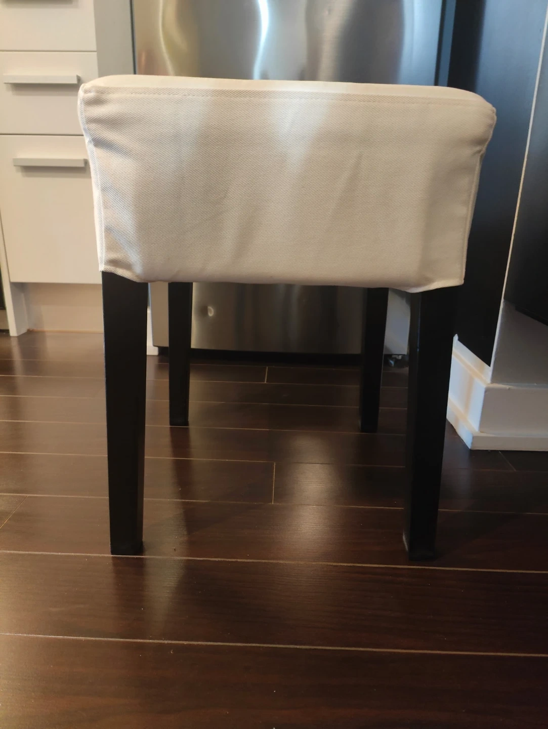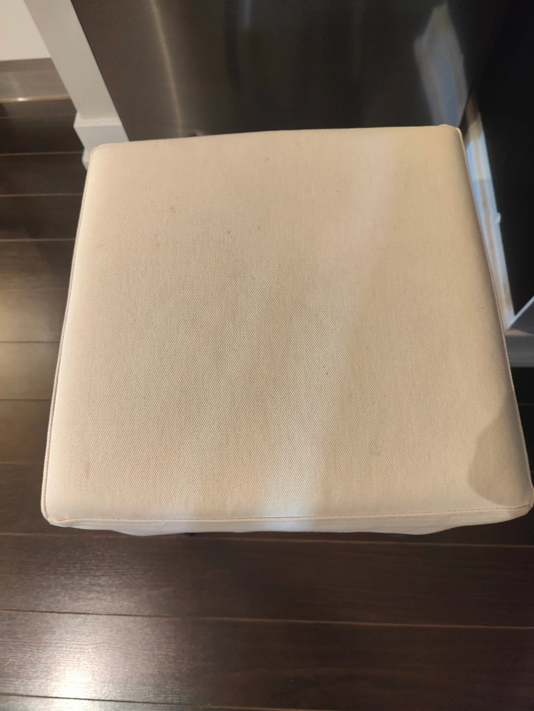 A versatile fabric ottoman with a beige upholstered top. Its wooden legs provide sturdy support. This ottoman offers convenient storage space inside. It's a practical addition to any room!