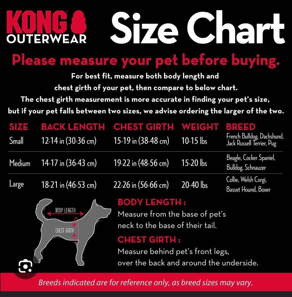 Brand new with tags still on. Kong Vest for Dogs, size Large. Didn't fit my dog, that's why I'm selling. It's very cute and good material, perfect to keep your doggo warm on a cold or rainy day!