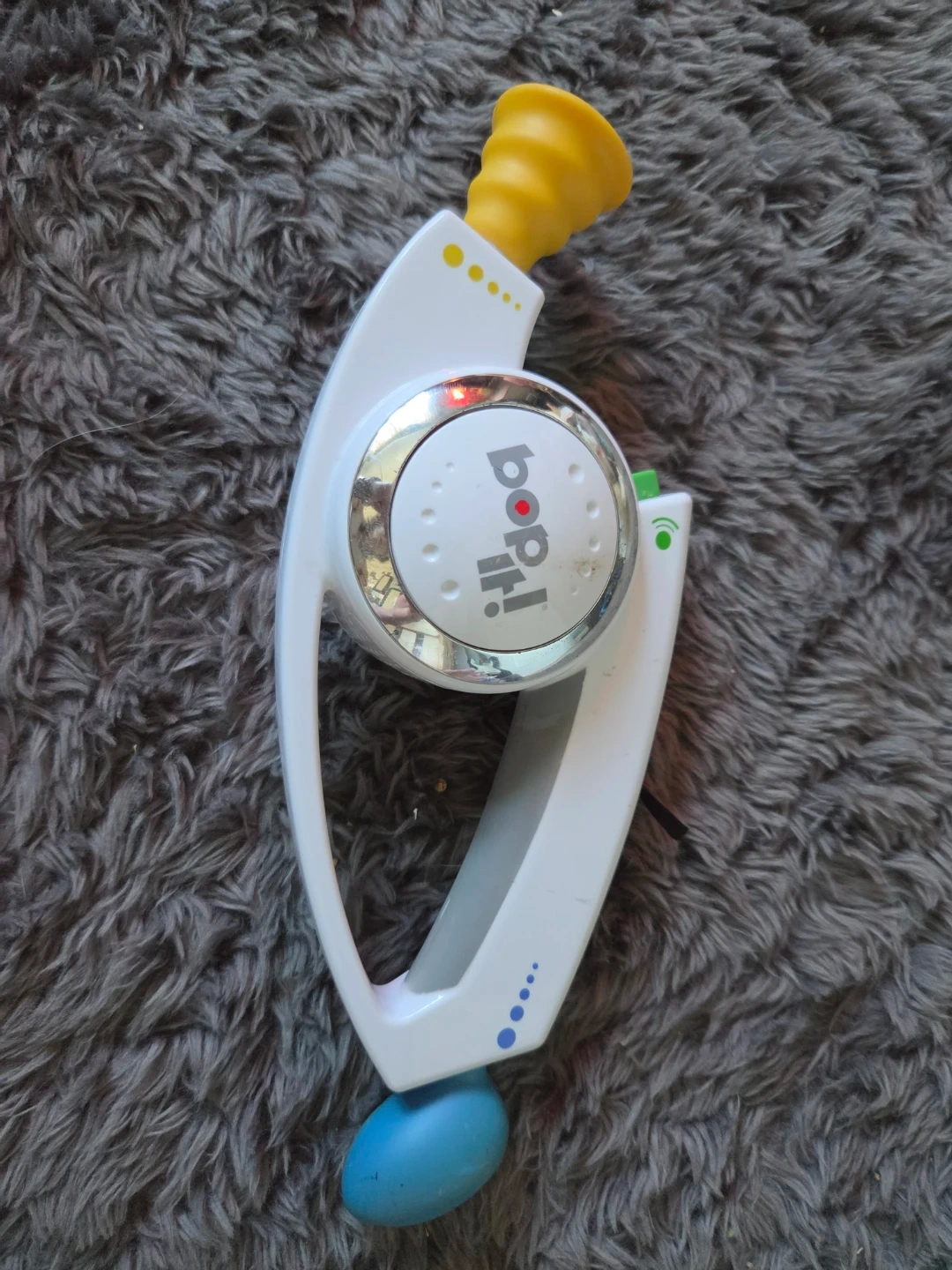 Bop It! The fun nostalgic game we all remember. Comes with batteries. It's a fun interactive toy for kids, see how long you can go following the voice. Do you bop it? Twist it? Pull it? Shout it?