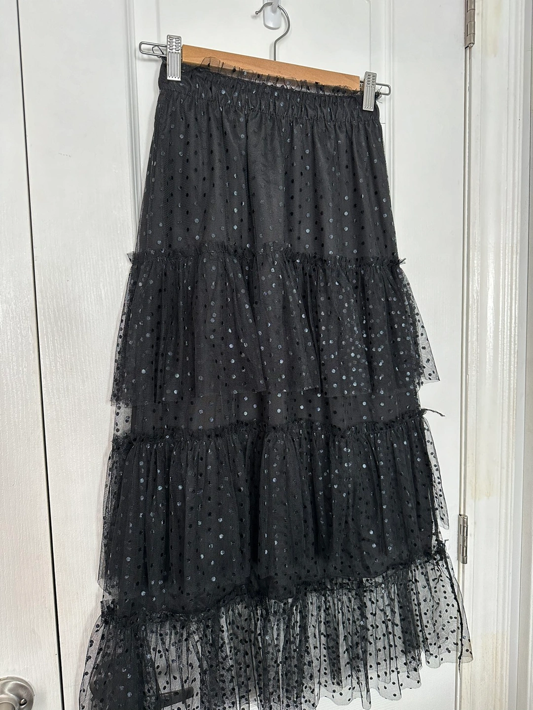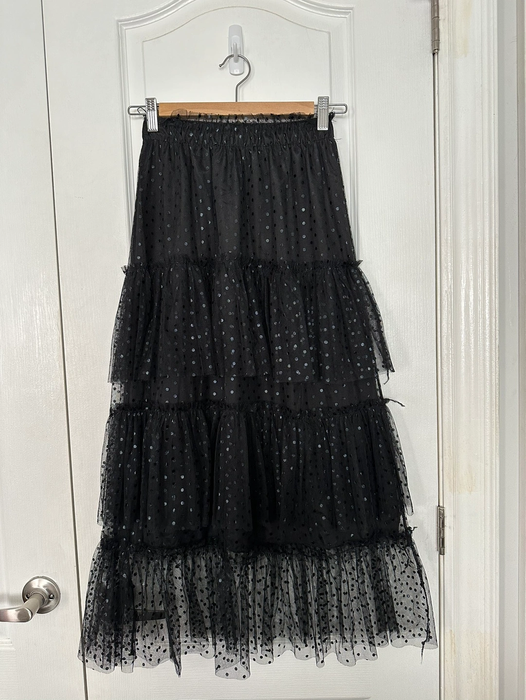 ▪️ black midi length skirt with dotted ruffles
