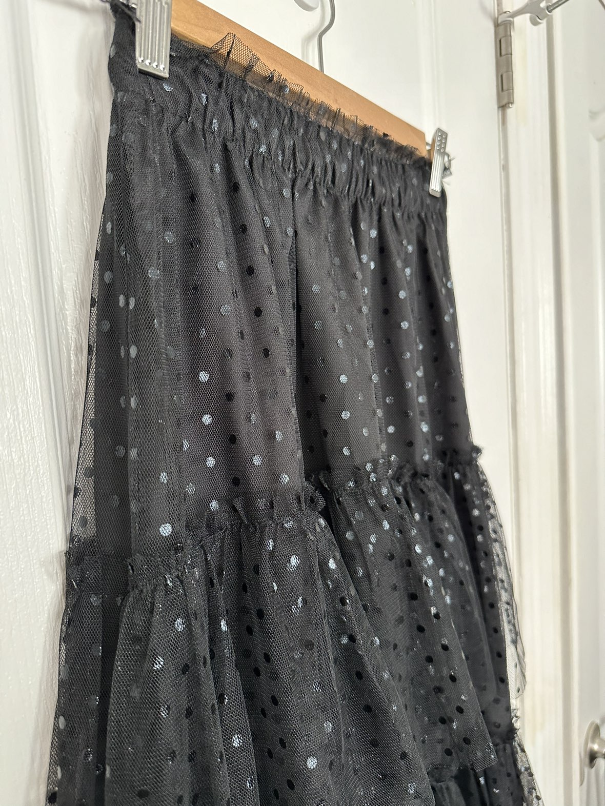 Black skirt • midi length • dotted ruffles