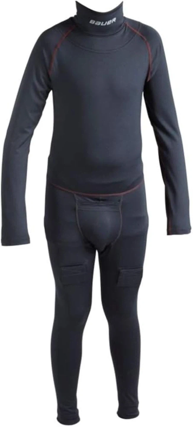 Bauer hockey base layer, top and bottom set with neck guard. Perfect for keeping warm on the ice!