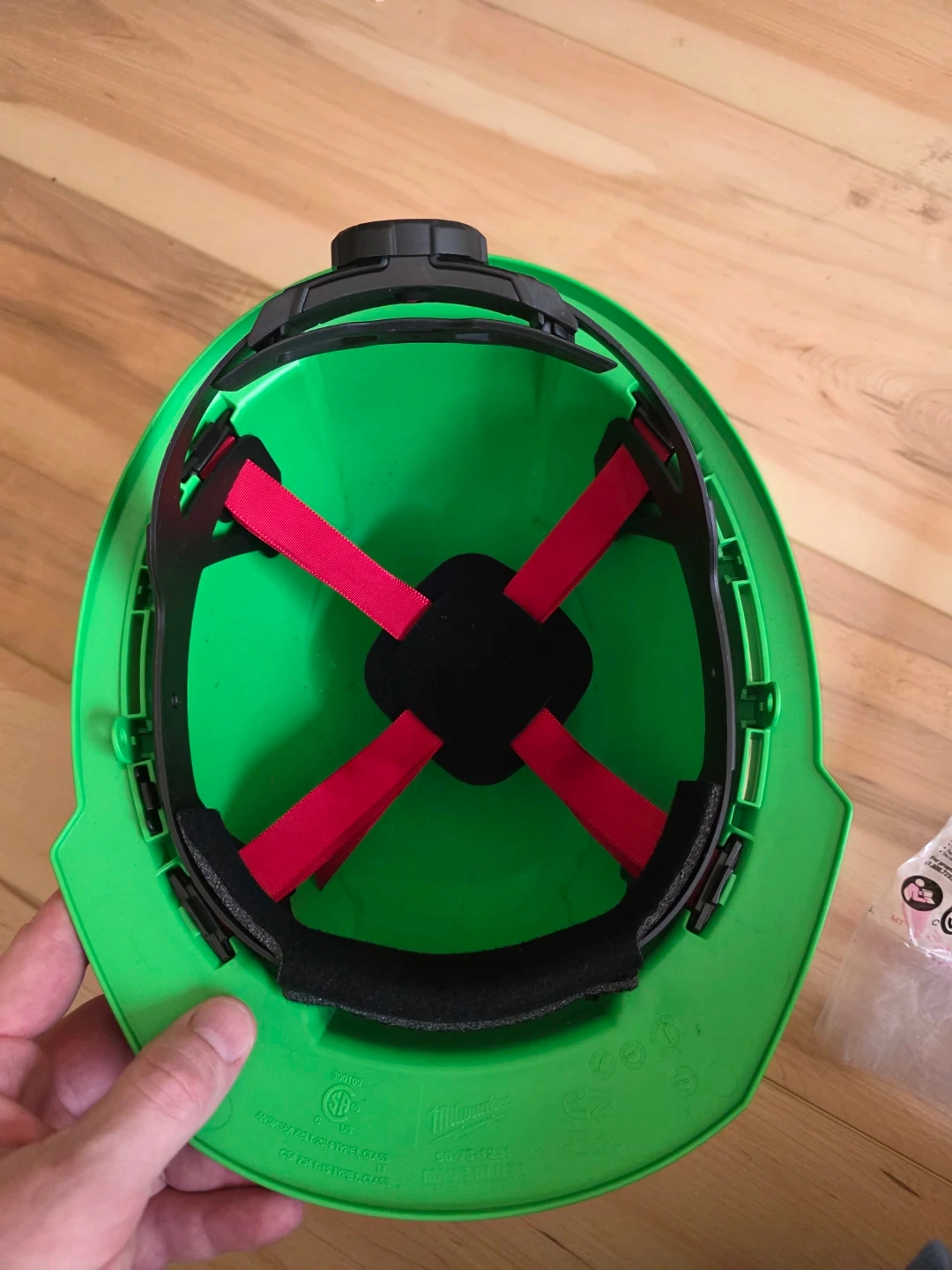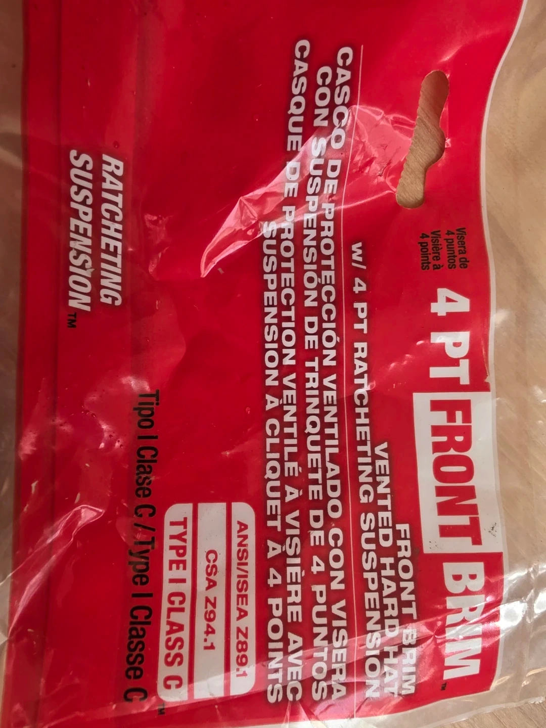 This is a Milwaukee 4 PT Front Brim Vented Hard Hat. It features a ratcheting suspension system. It's Type I Class C and meets ANSI/ISEA Z89.1 and CSA Z94.1 standards.