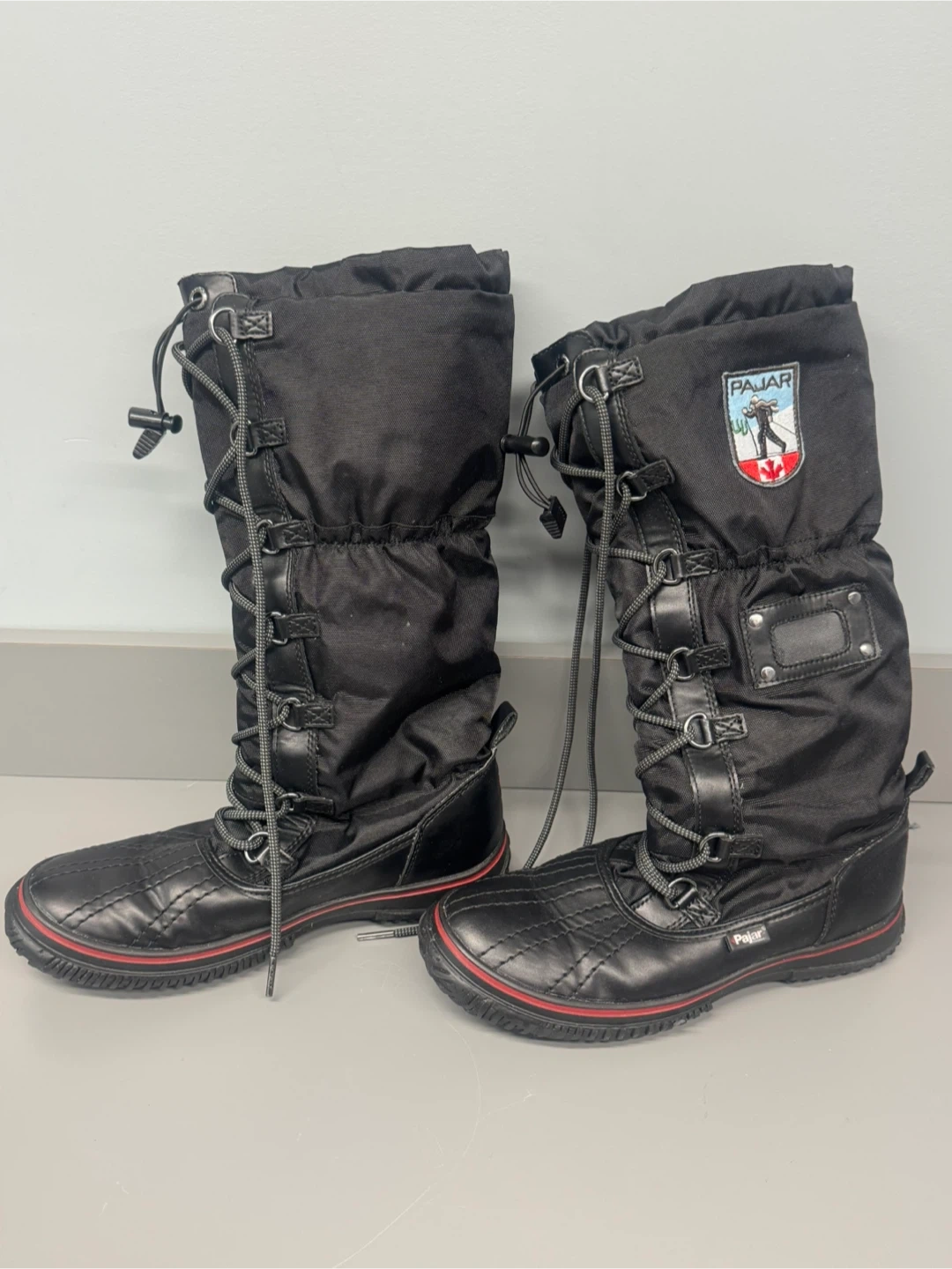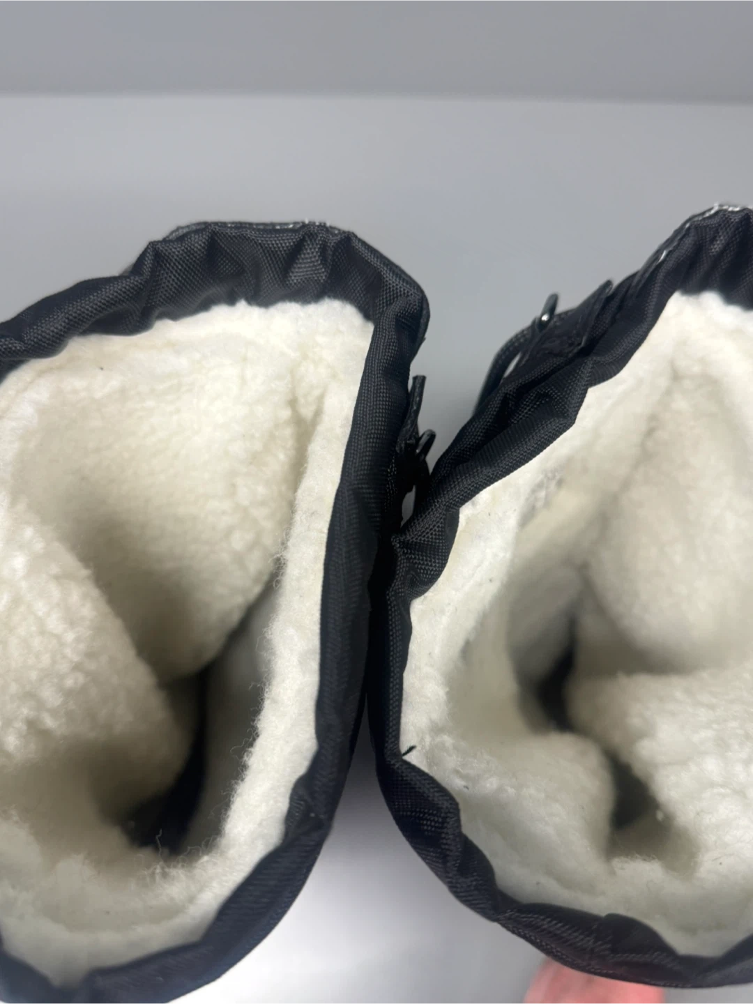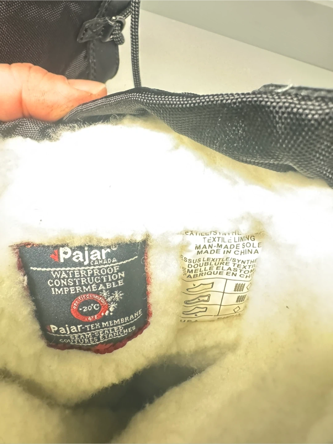 Pajar Insulated Winter Boots with Black Exterior and Cream Lining. Lined with cozy fleece for extra warmth. Great for keeping feet warm and dry during winter!