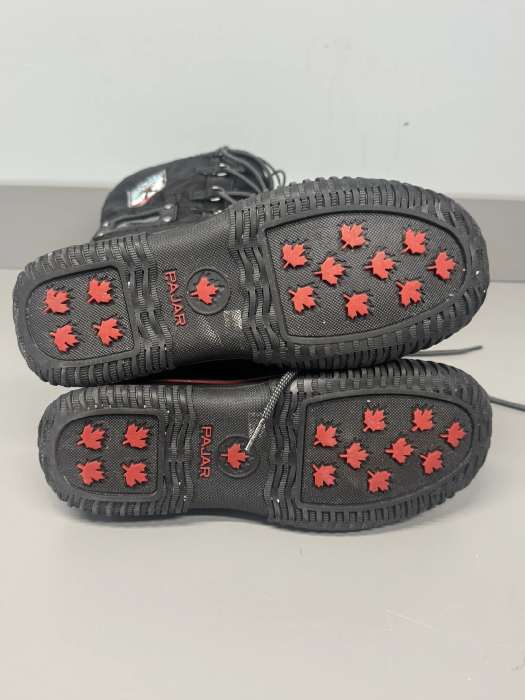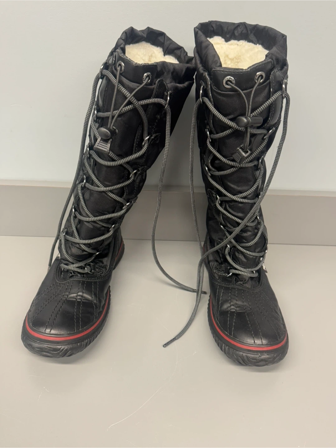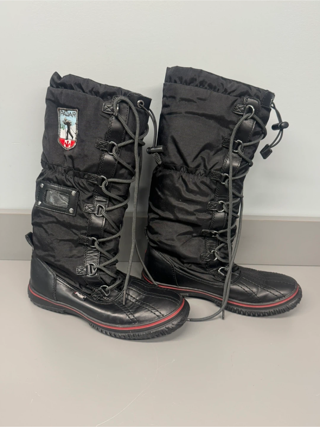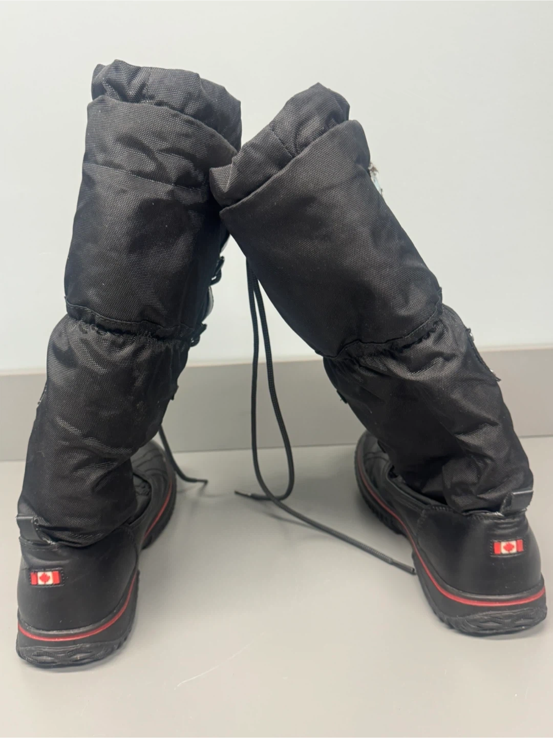 Pajar Insulated Winter Boots with Black Exterior and Cream Lining. Lined with cozy fleece for extra warmth. Great for keeping feet warm and dry during winter!