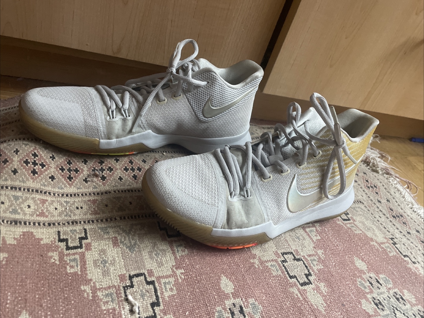 Selling a pair of Nike Kyrie 3 basketball shoes. They are in good condition and ready for the court or casual wear. Size is US 9. They were used 3-5x but was in storage.