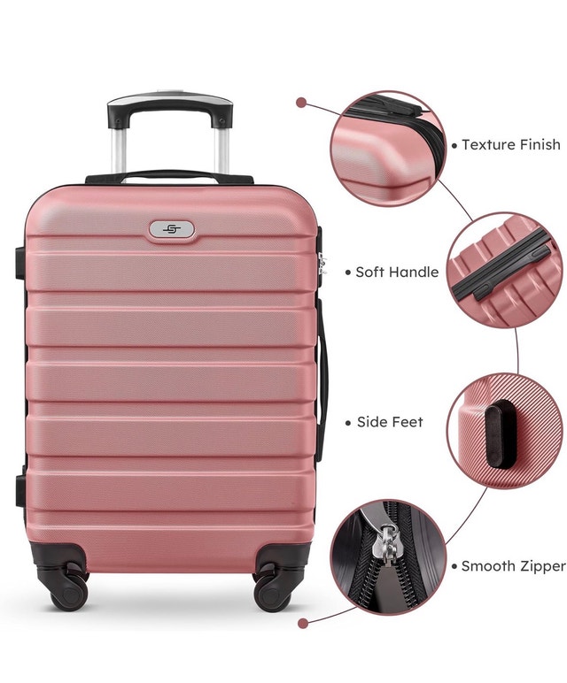 This is a 6-piece SWISSGEAR luggage set. It includes a 13-inch cosmetic suitcase, a 20-inch carry-on, a 24-inch and a 28-inch checked suitcase, an expandable duffle bag, and a toiletry bag. The luggage is hard-sided ABS with spinner wheels and telescopic handles, featuring combination locks. The suitcases nest for easy storage and have multiple compartments for organized packing. The set is perfect for getaways, vacations, or business trips. Features include durable construction, 360-degree spinner wheels, telescopic handles, multiple compartments, and an elegant rose gold finish. Similar sets sell for around $250 on Kijiji. This set is new. Cash and cashless payments are accepted. For Sale By: Owner.
