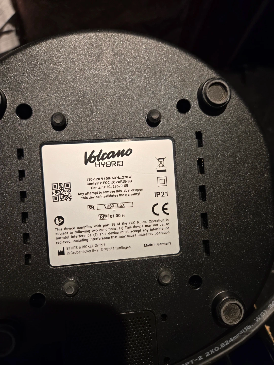 This is the Storz & Bickel Volcano Hybrid onyx vaporizer. It features digital temperature control and a LED display. It's made in Germany. Induction and convention heaters.