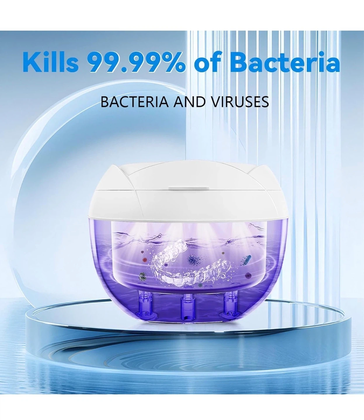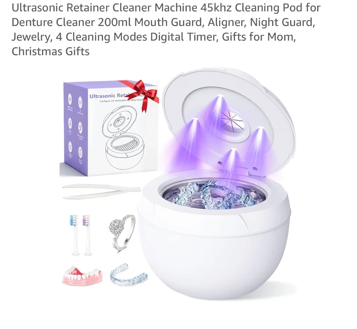 This ultrasonic cleaner machine offers 4 cleaning modes and a 200ml capacity. It kills 99.99% of bacteria and viruses using 45KHz ultrasonic vibrations and light. Use it for retainers, dentures, aligners, mouth guards, and jewelry!