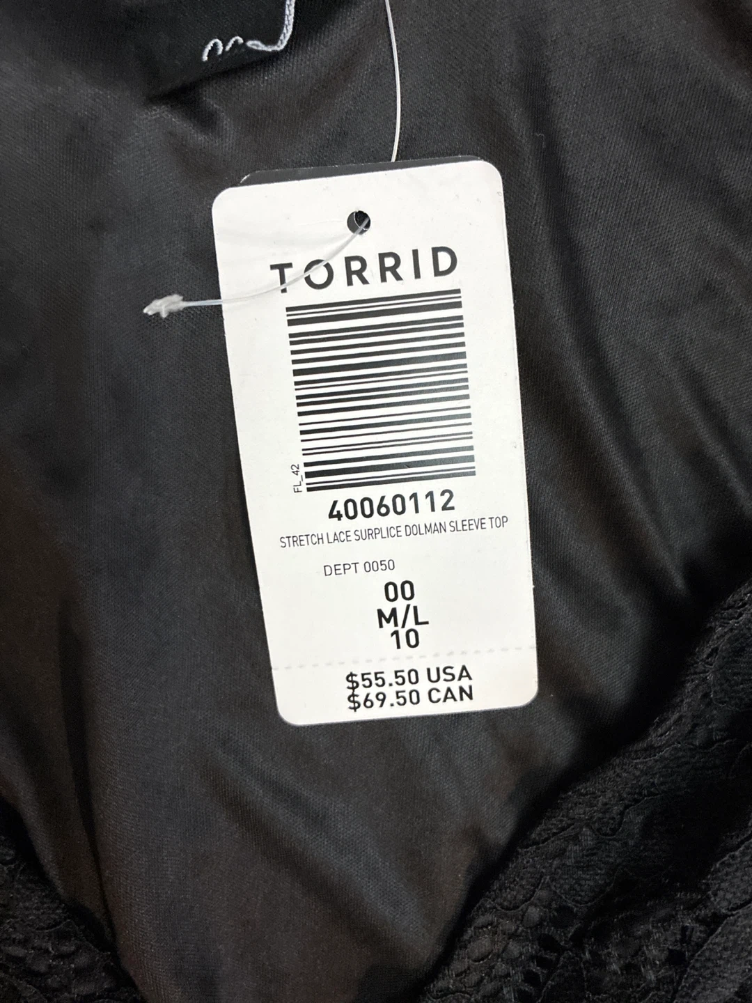new w tage Torrid Black Lace Surplice Top