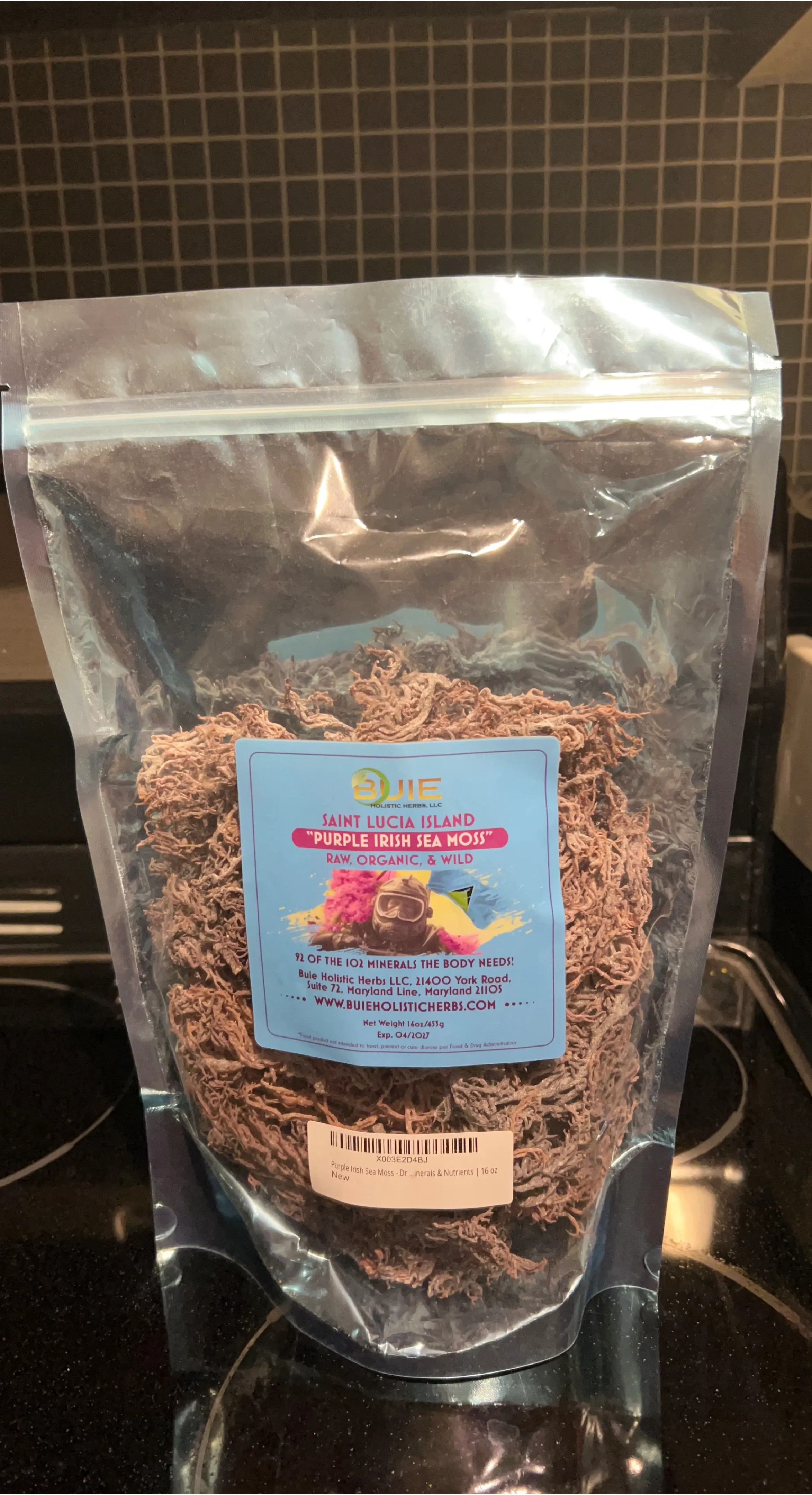 Selling a new bag of Buie Holistic Herbs Saint Lucia Island "Purple Irish Sea Moss"! It's raw, organic, and wild, providing 92 of the 102 minerals your body needs.