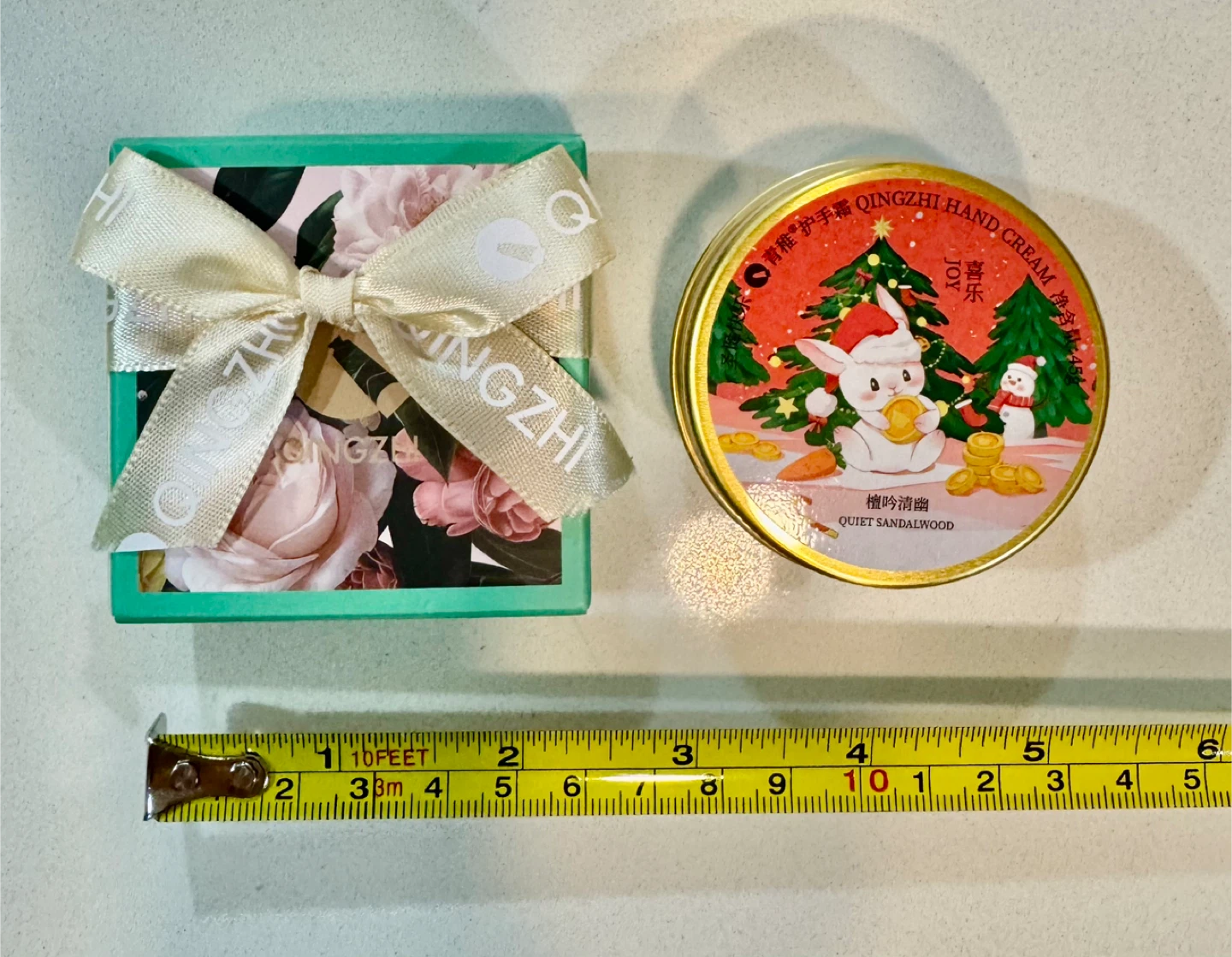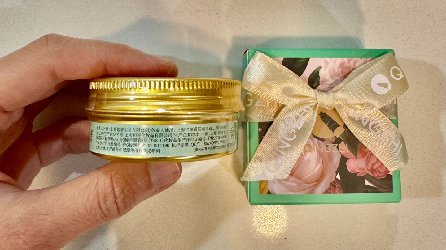 This is Qingzhi hand cream in the Quiet Sandalwood scent. It comes in a decorative tin with a festive bunny and snowman design. The cream is suitable for dry hands. It's in a compact size for easy carrying.