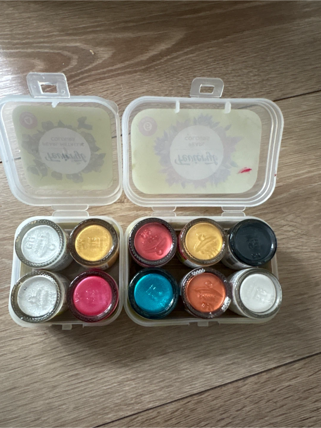 This set includes Fevicryl Pearl Colours in 4 shades and Fevicryl Pearl Metallic Colours in 6 shades. These are acrylic paints with a pearlescent finish. Great for adding a shimmering touch to crafts and art projects!