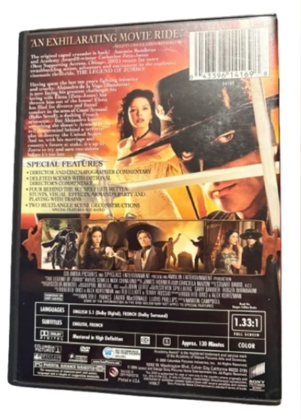 Antonio Banderas and Catherine Zeta‑Jones return in this action‑packed sequel filled with swashbuckling stunts, adventure, and classic Zorro style. Includes multiple behind‑the‑scenes featurettes, deleted scenes, commentary tracks, and multi‑angle scene breakdowns. Plays perfectly; case shows minimal shelf wear.