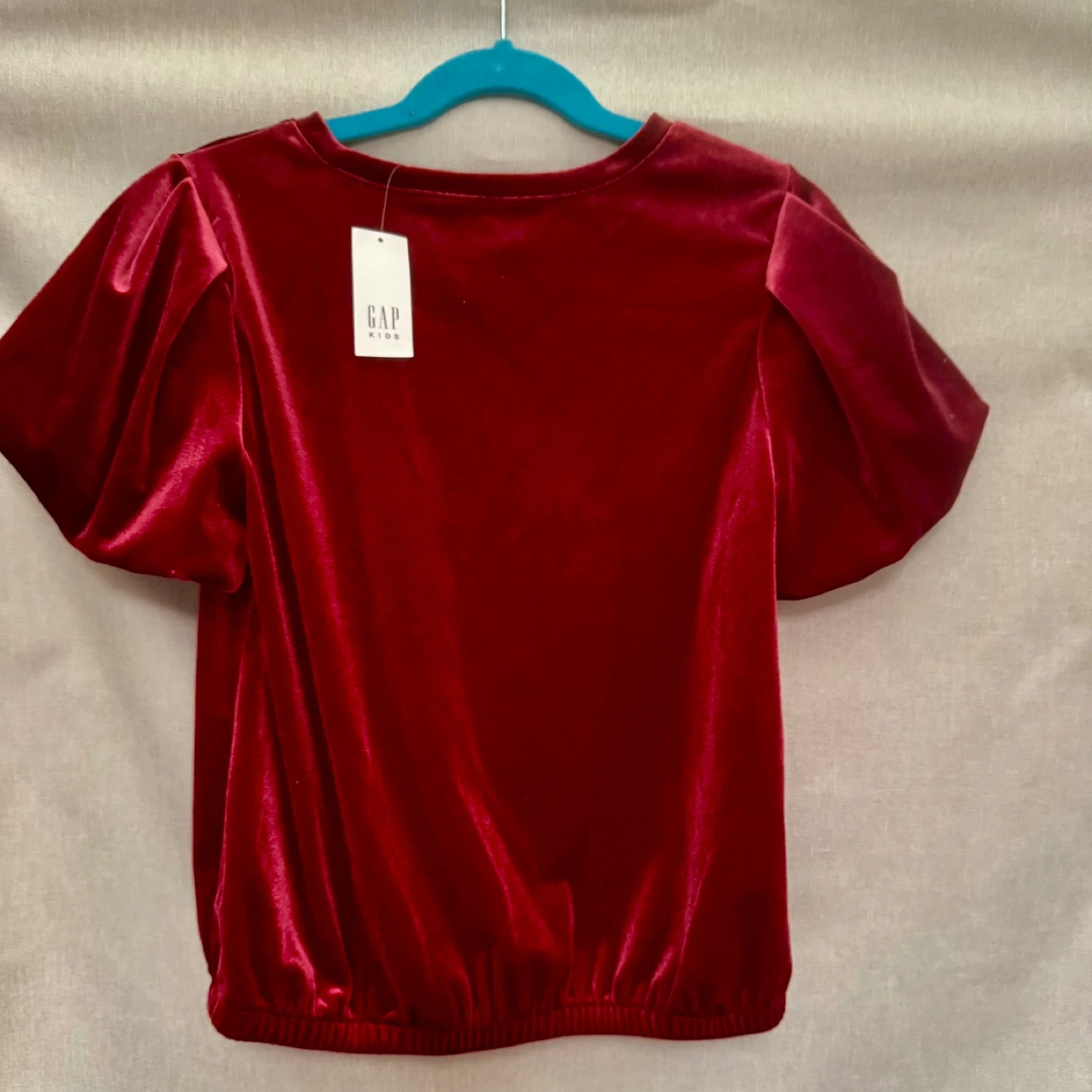 Gap Kids Burgundy Velvet Puff Sleeve Top - Size Medium (8)
