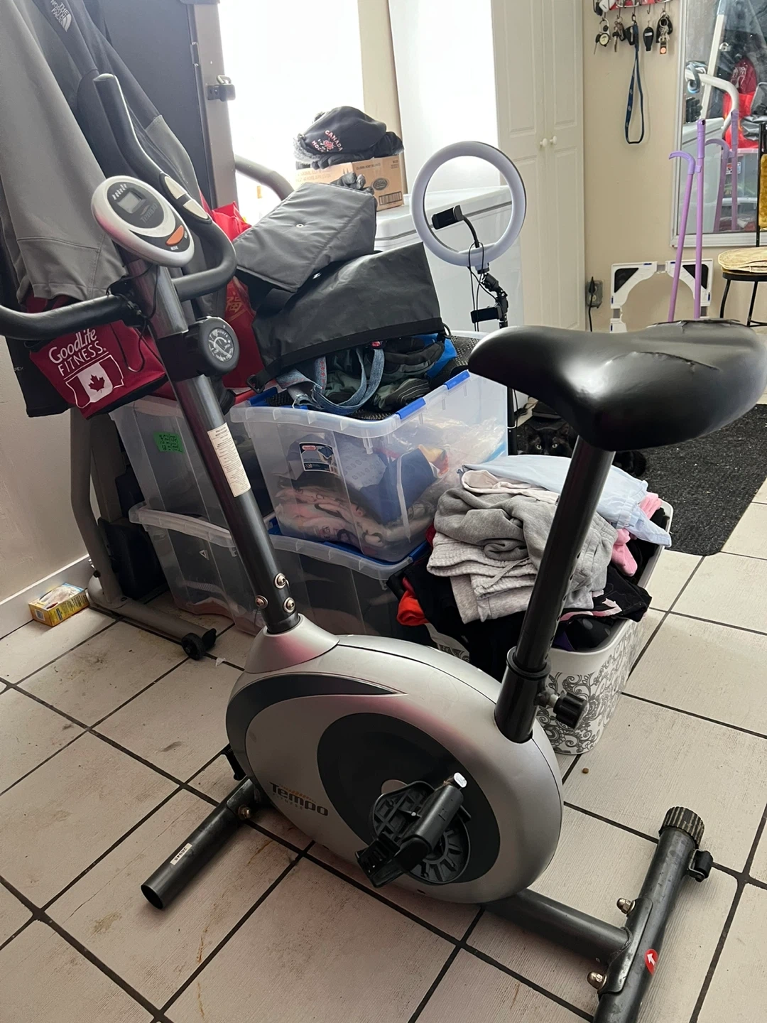 This is a Tempo stationary exercise bike, silver and black in colour. The digital display for tracking is not working.. but the bike still working.