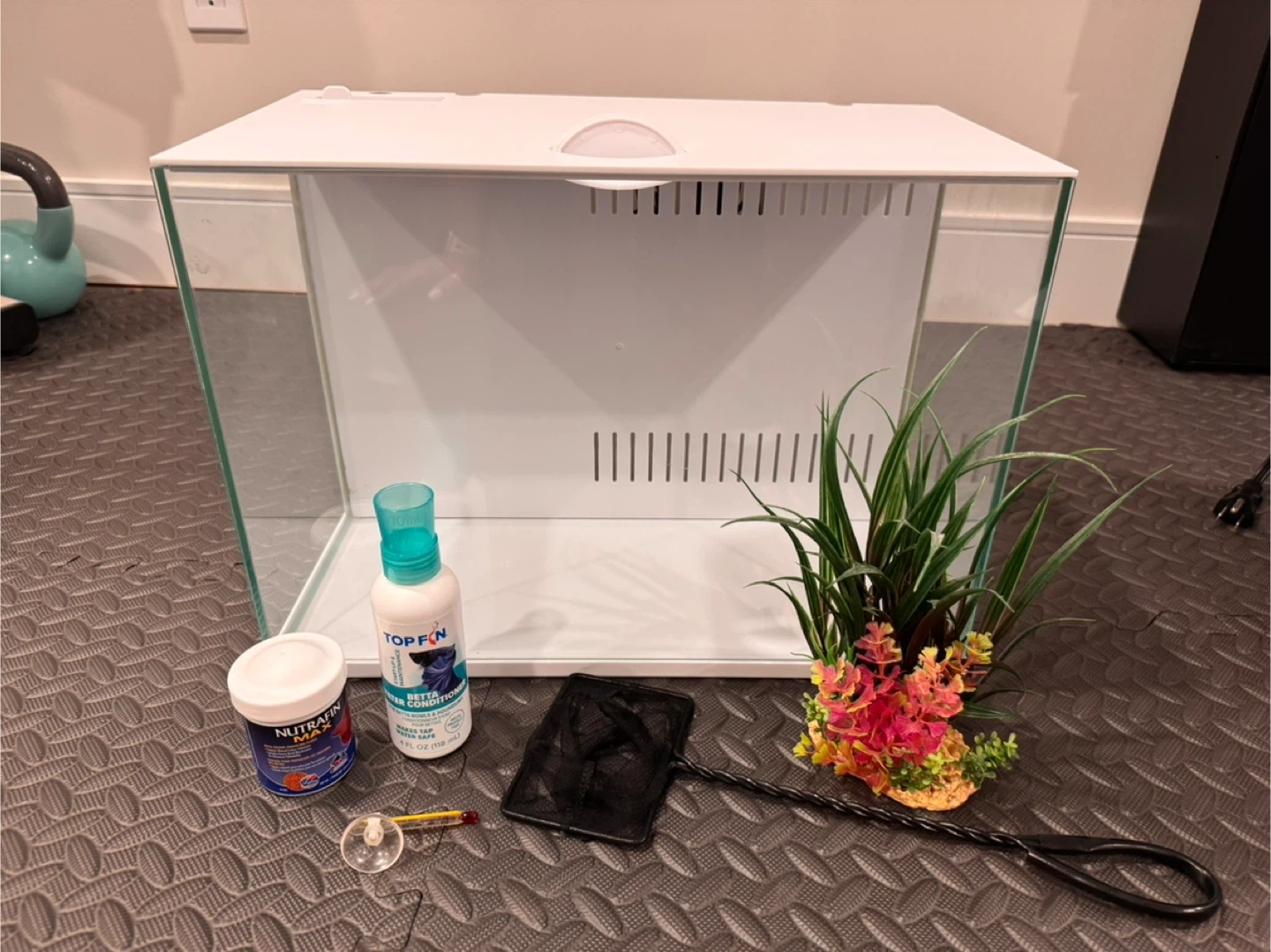 It comes with plant, net, thermometer and water conditioner