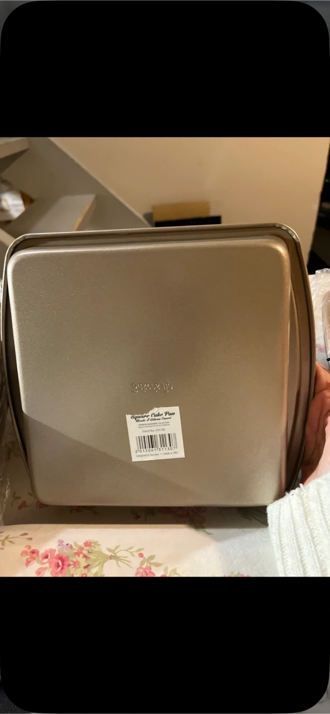 This is a Baker's Tip square cake pan. It's a 10-inch pan with a non-stick coating. It's also easy to clean!