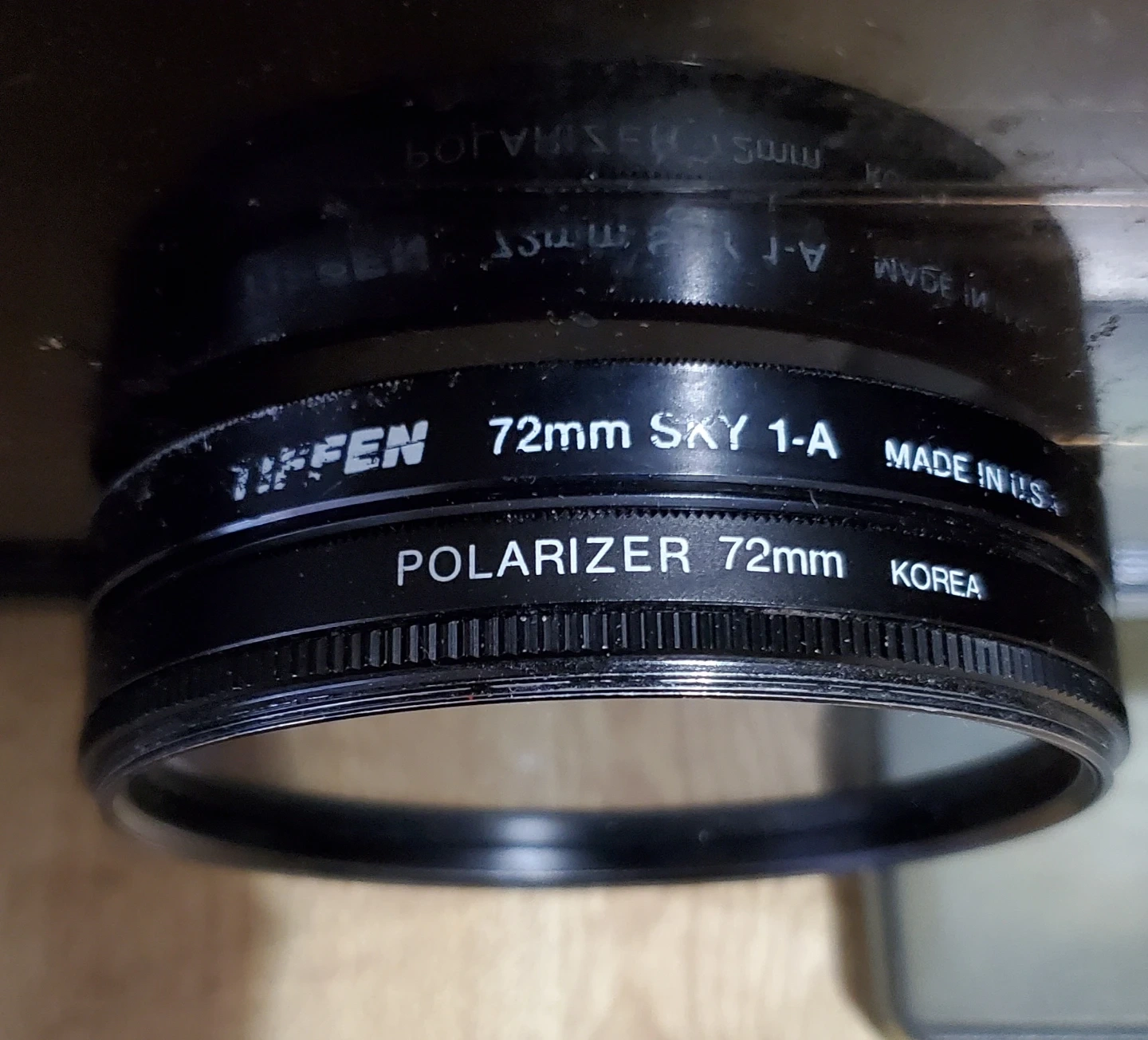 Selling this set of Tiffen 72mm filters. Includes a Polarizing Filter & Hi-Optek Sky 1-A Filter. Used but in great shape with no scratches.