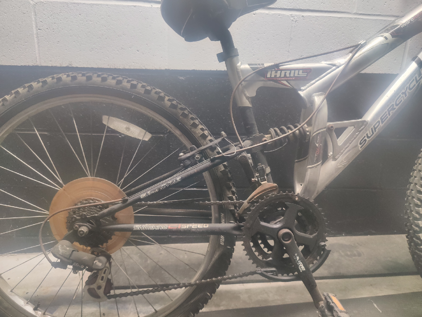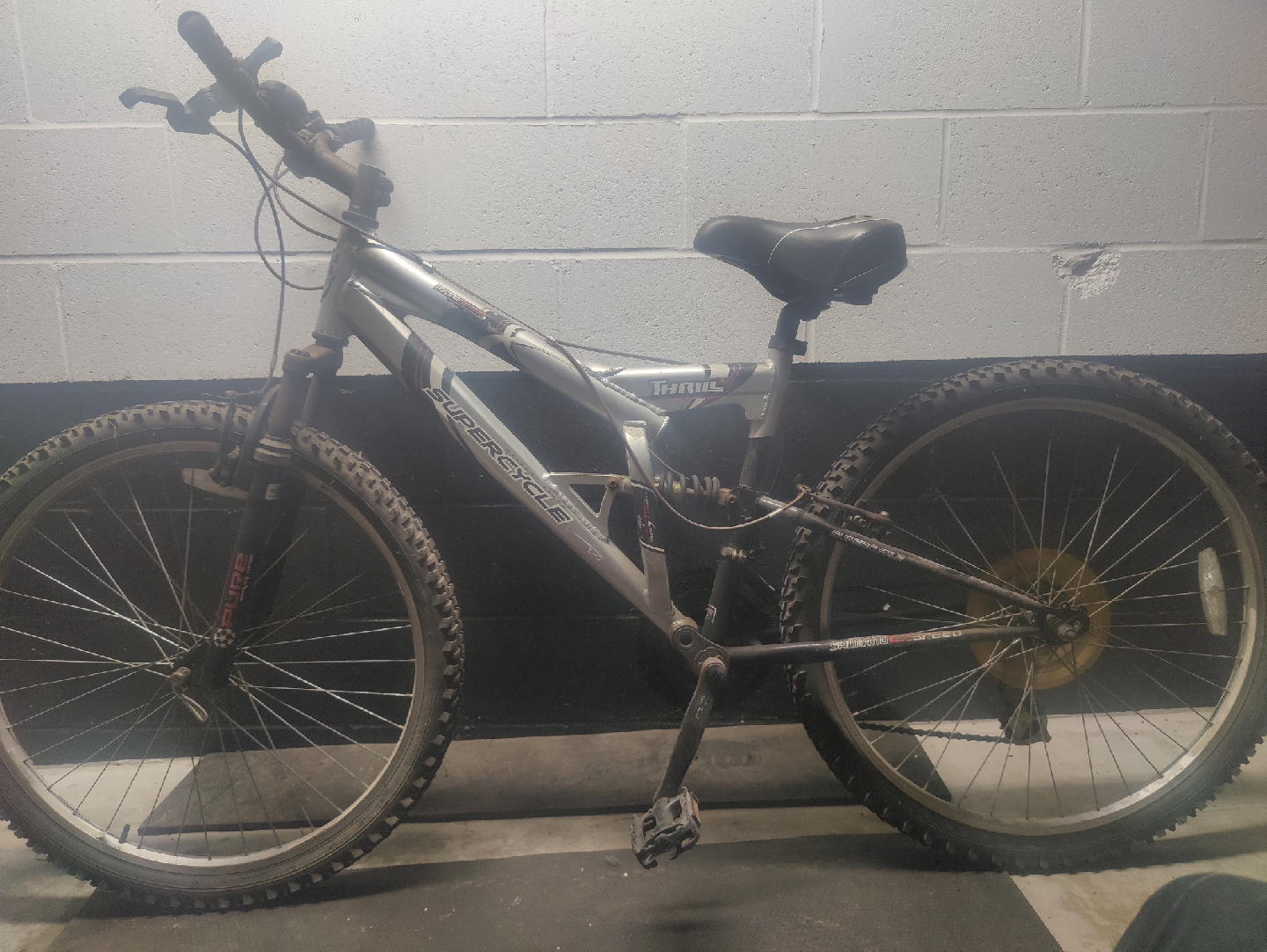 Selling a Supercycle Thrill mountain bike. It's a full suspension bike and has some signs of wear, as you can see in the photos.