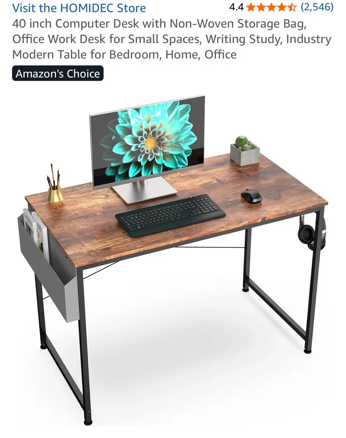 Selling a HOMIDEC 40-inch computer desk! It's perfect for small spaces and makes a great work station. The desk includes a non-woven storage bag on the side, which is super handy for keeping things organized. Dimensions are approximately 39.3" x 23.6" x 29.5".