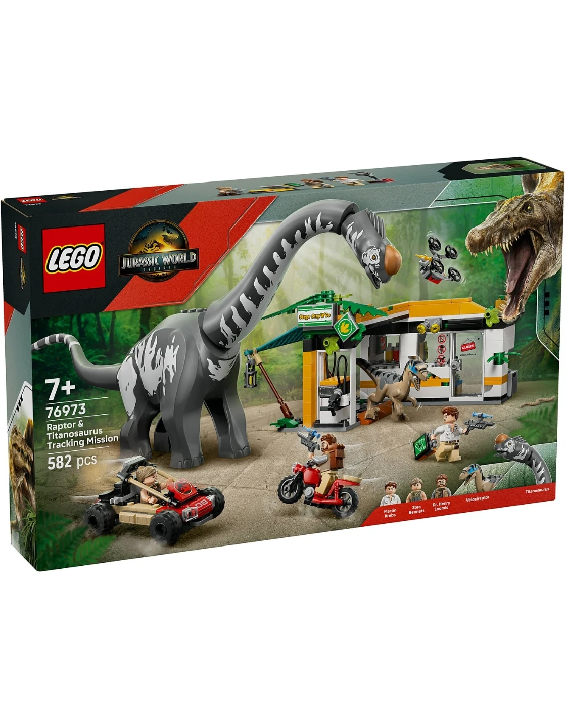 Lego Raptor and titanosaurus tracking mission. Used. It looks to be 100% complete small pieces might be missing. Box and instructions included.