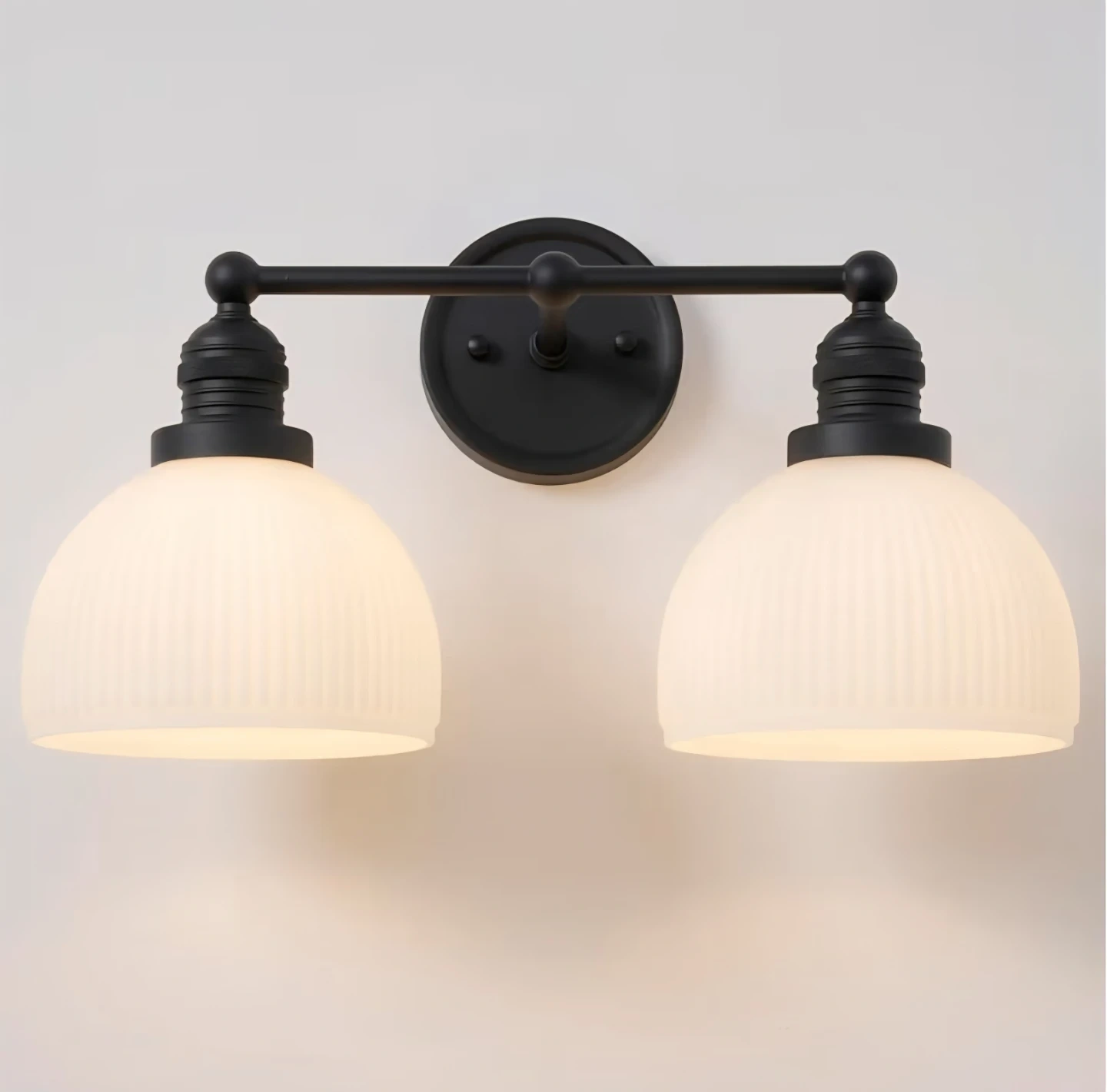 Teqinchy 2-Light Wall Sconce, Black Double Bathroom Light with Minimalist Milky Glass, Farmhouse Style Wall Sconce for Bathroom Mirror, Living Room
