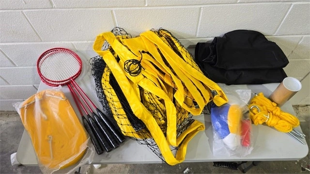 Brand new and complete in an open box. Pickup is near Kipling and Evans. Complete volleyball and badminton set for outdoor use. Includes net, poles, racquets, birdies or shuttlecocks, and ball. Durable carrying case allows you to take the set anywhere. Heavy-duty powder-coated poles and premium PE net. Great for camping trips, beach games, backyard parties and more.