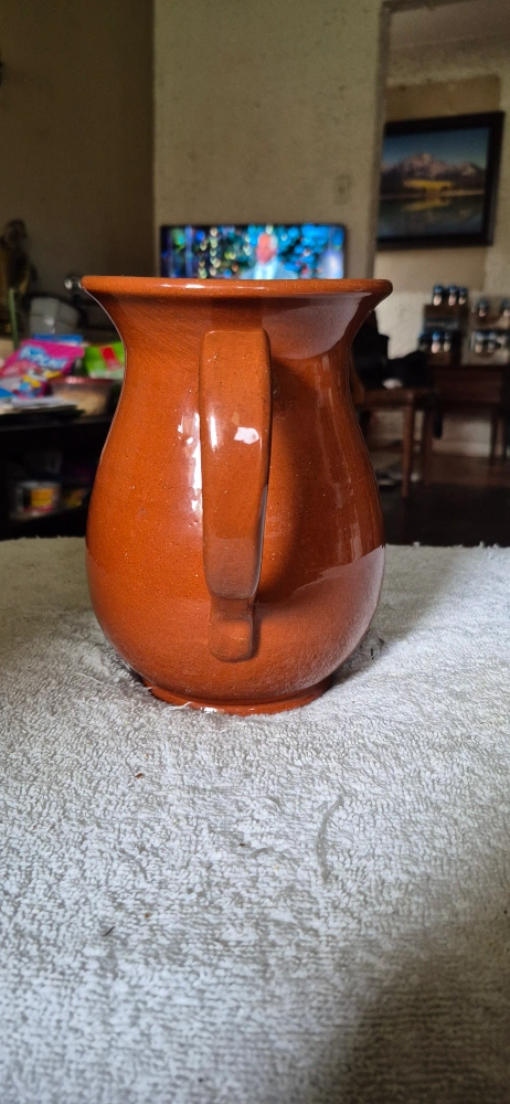 Selling a lovely ceramic pitcher! It's in great shape and would look perfect on any table. The colour is a warm terracotta, making it a neutral piece for any home. It's just waiting for a new home! Great condition, no cracks or chips.