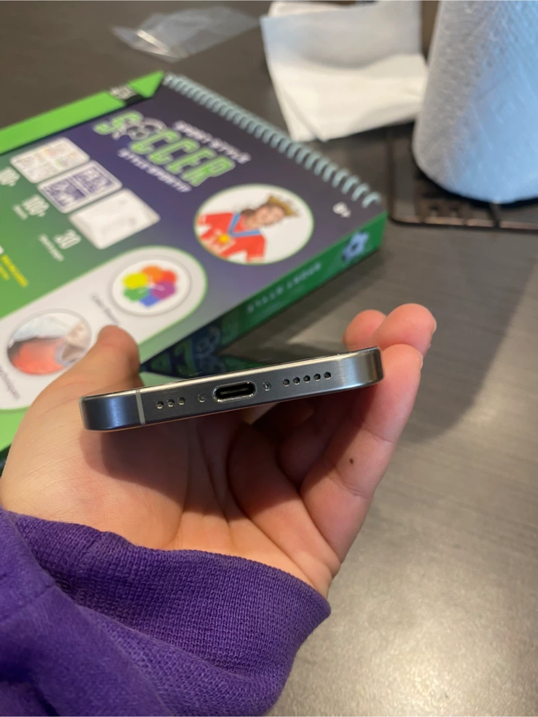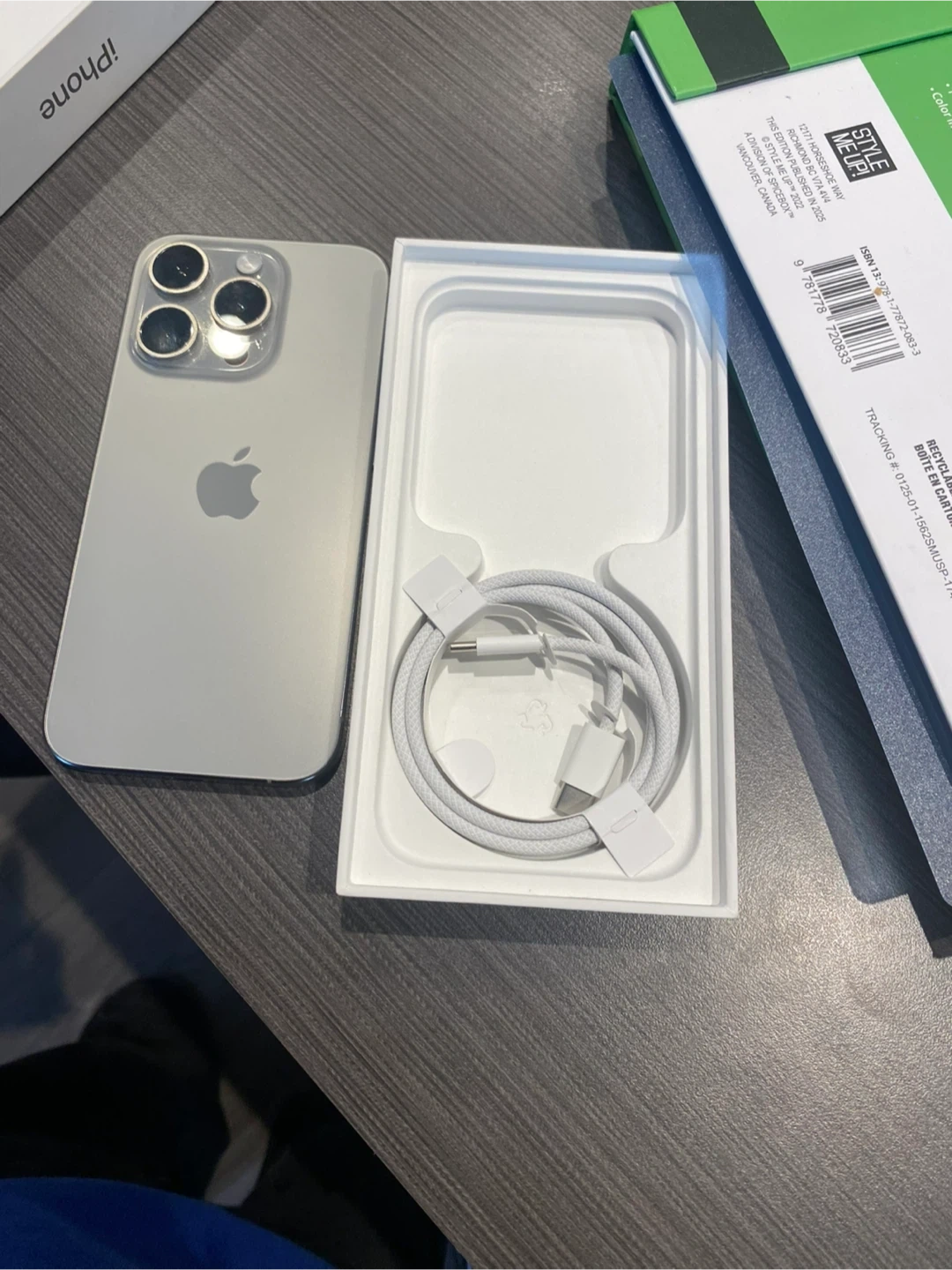 This is an Apple iPhone 15Pro in silver. It's in mint condition and comes with its original box and Apple charger has 128 GB and 90% battery heath also willing to do a trade
