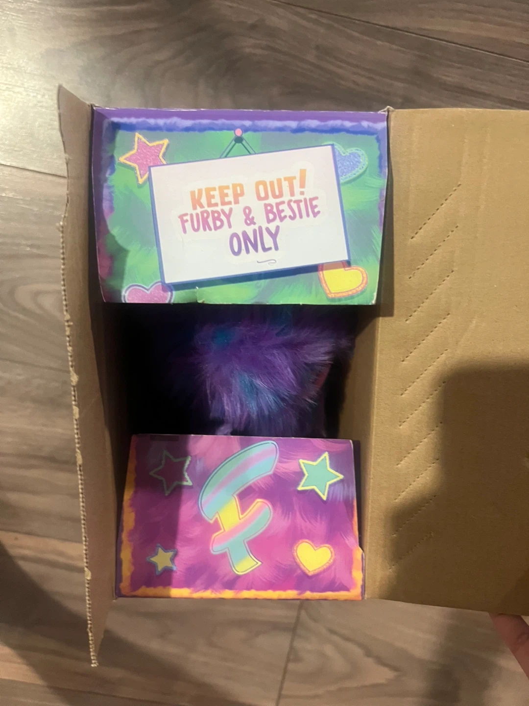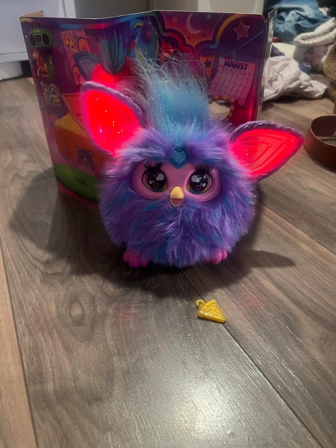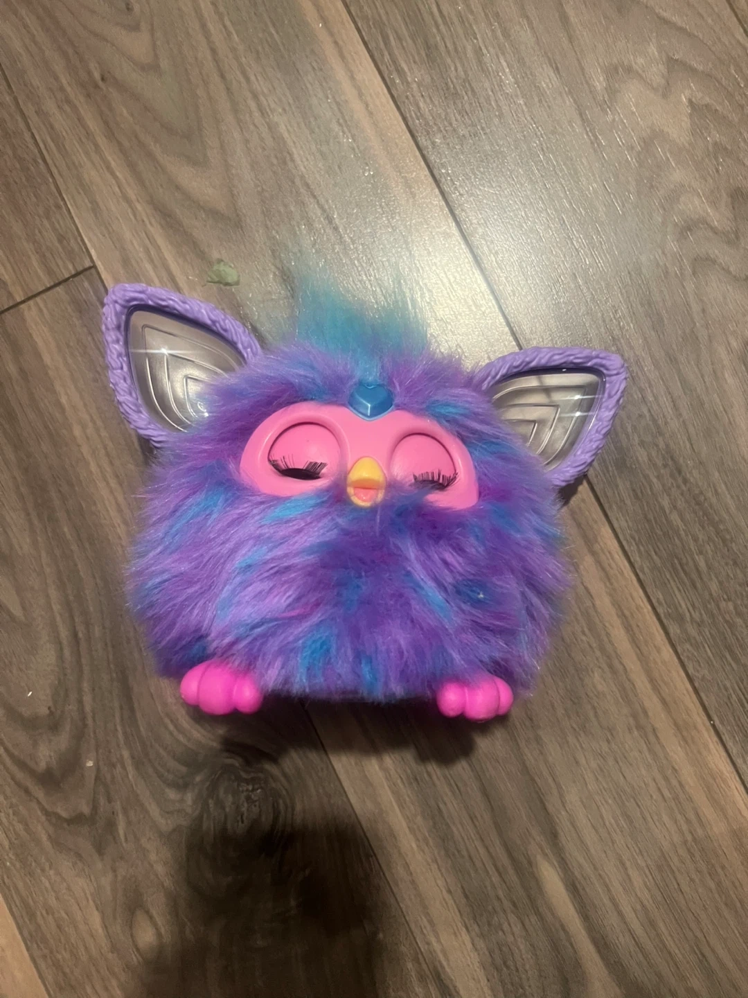 This is a Furby Connect interactive toy in purple and blue. It's an electronic toy that responds to sound and touch. It also comes with its original box.