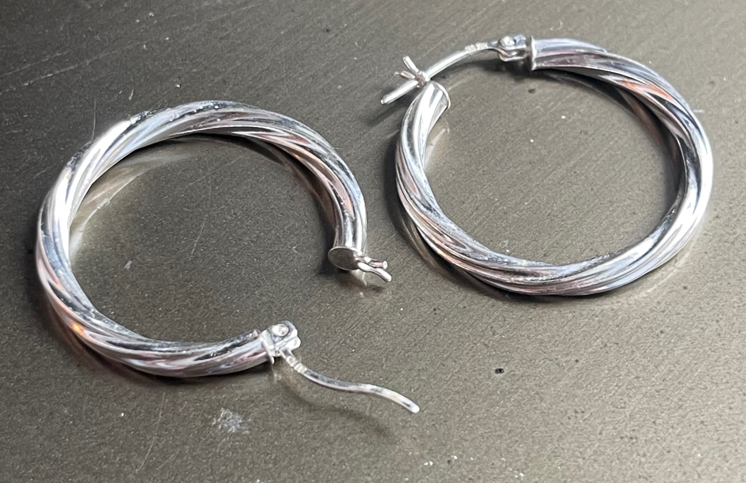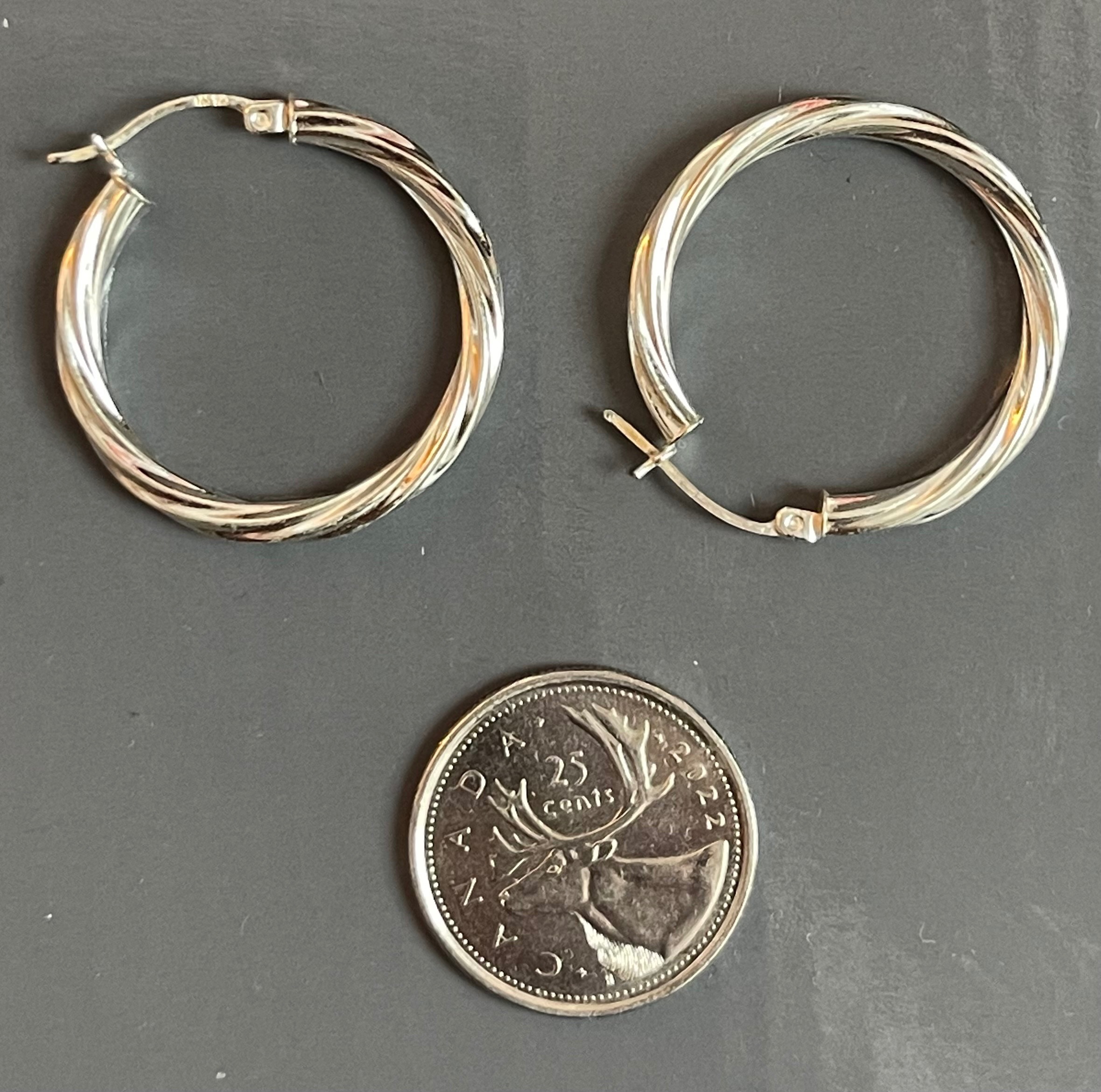 Every jewelry collection needs a good pair of silver hoops, and these have a really nice "twisted rope" or braided detail that makes them stand out from standard smooth ones. They’re roughly the size of a quarter, so they catch the light beautifully without being too bulky.