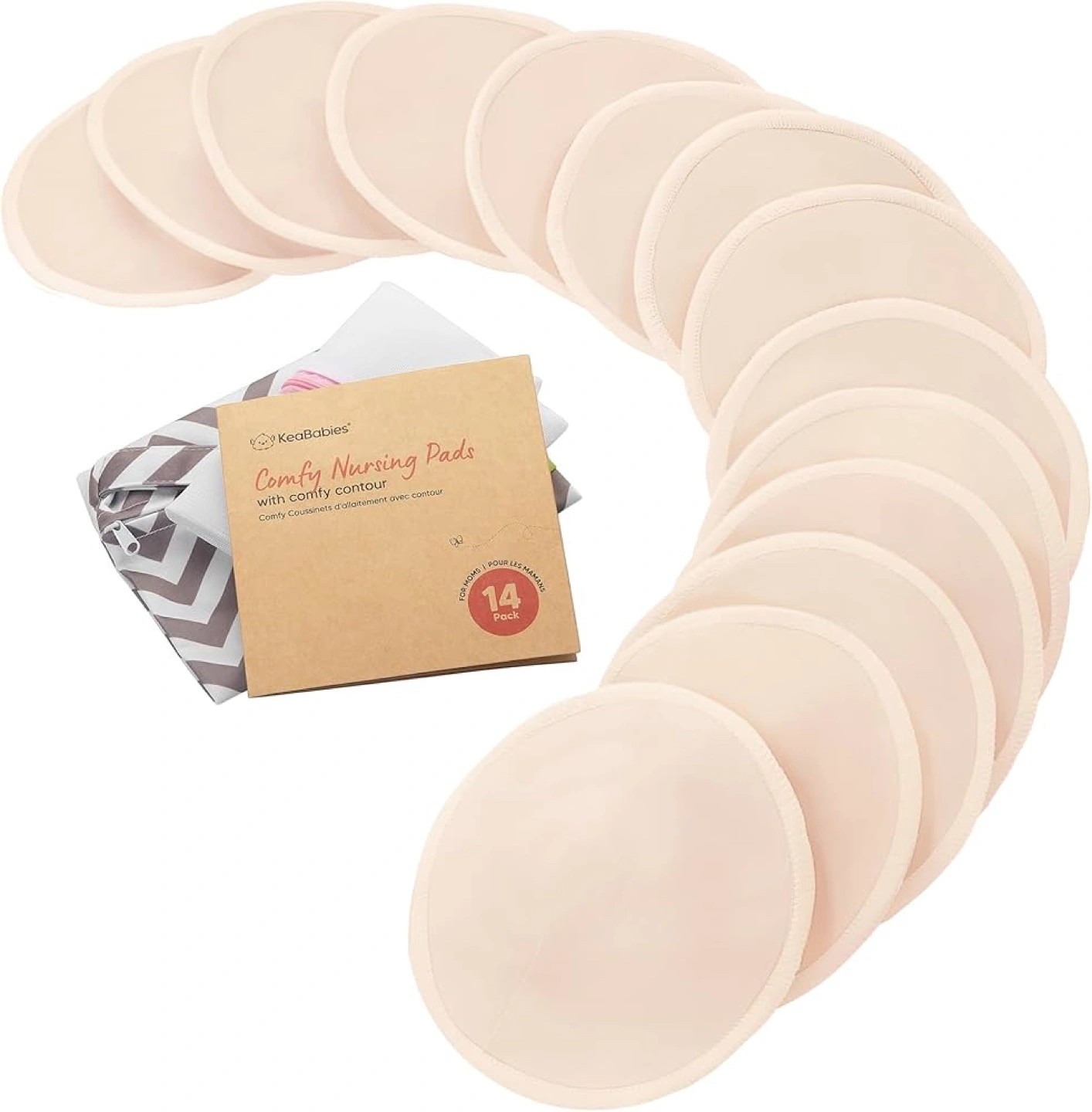 Selling a pack of KeaBabies Comfy Nursing Pads. This set includes 14 pads, perfect for providing comfort and support. They come with a comfy contour design and a convenient carrying pouch, making them easy to take on the go. Great for new moms!