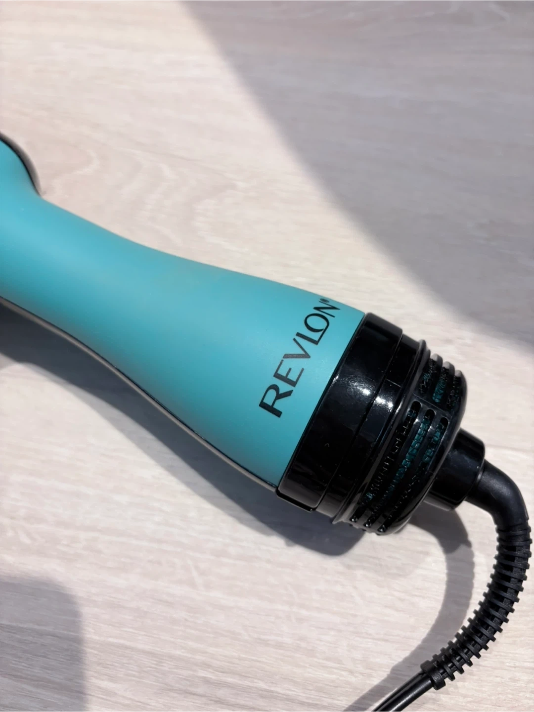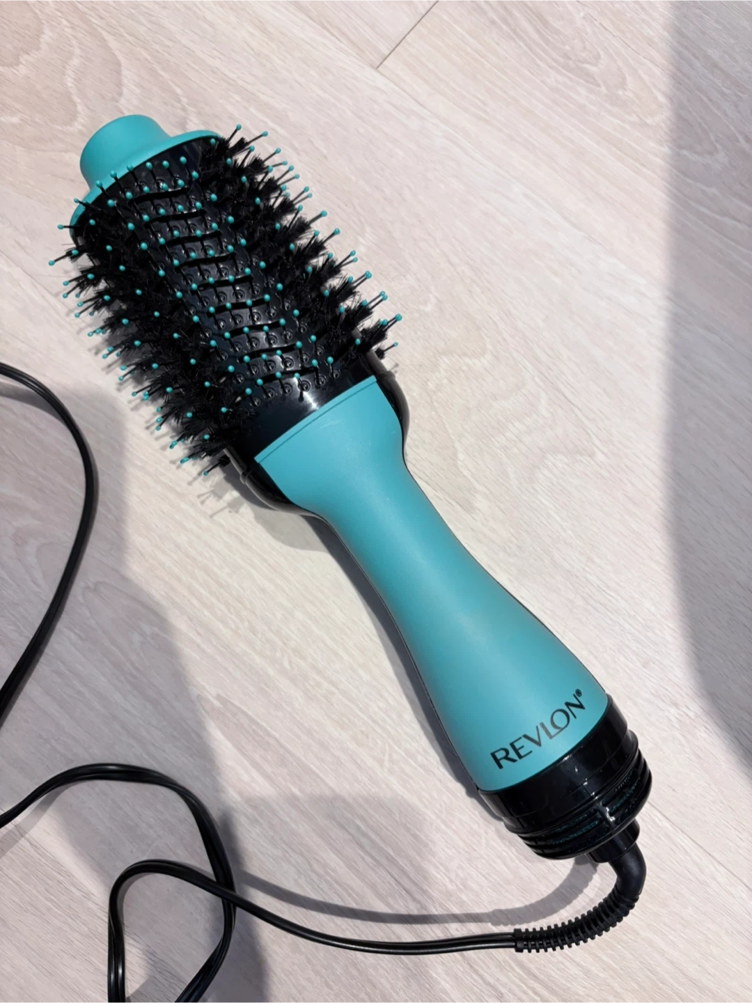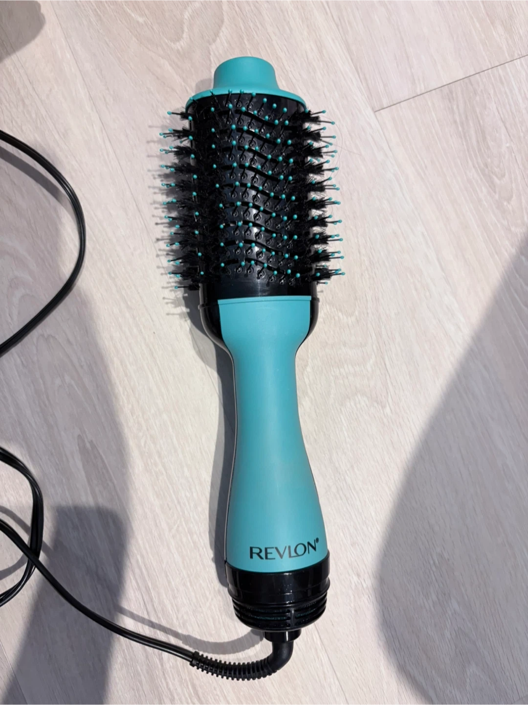 It's a Revlon One-Step Hair Dryer and Volumizer in a teal colour. It's designed to dry and style hair in one step for a smooth finish. Perfect for achieving salon-quality blowouts at home! Barely used.