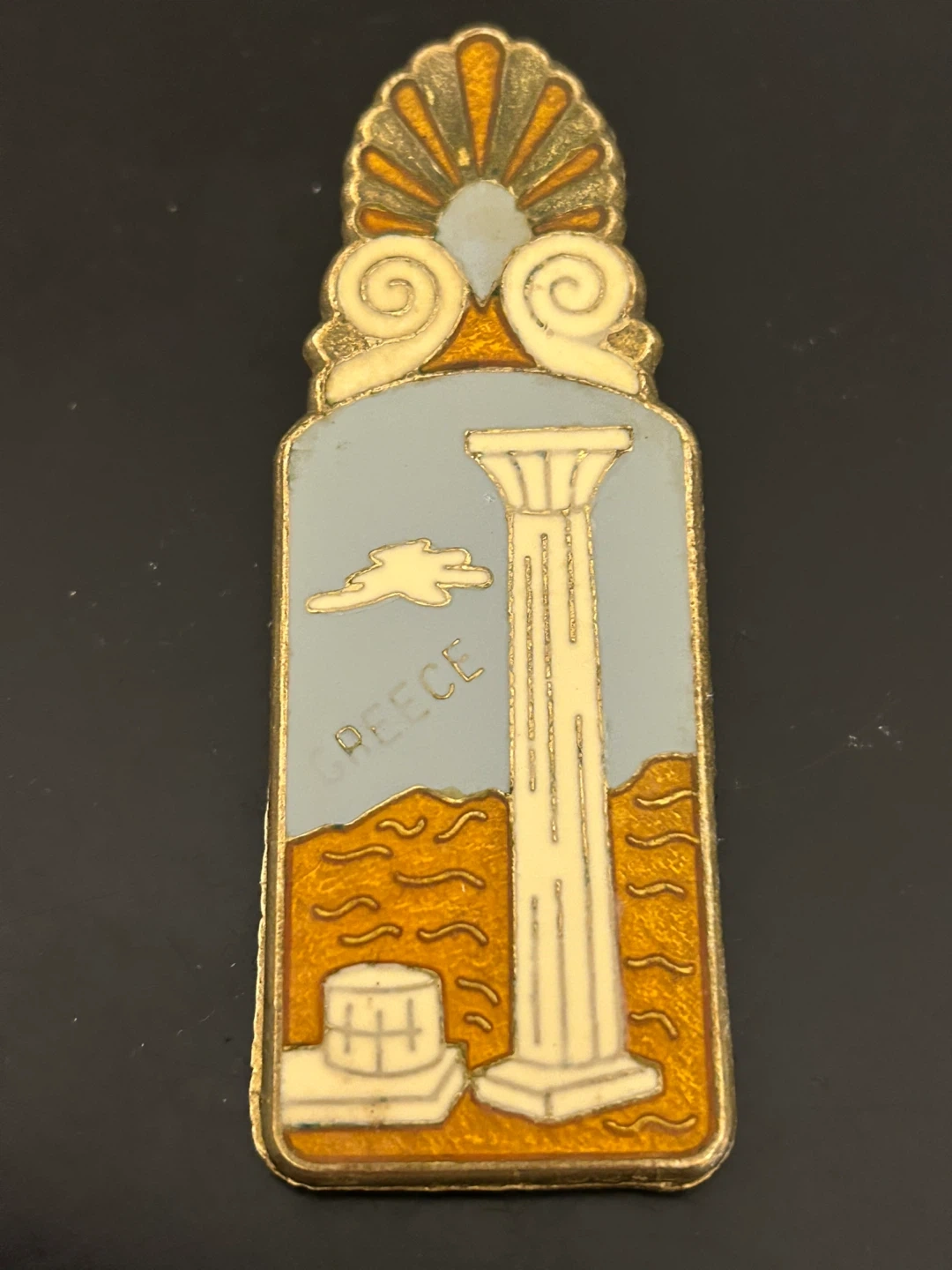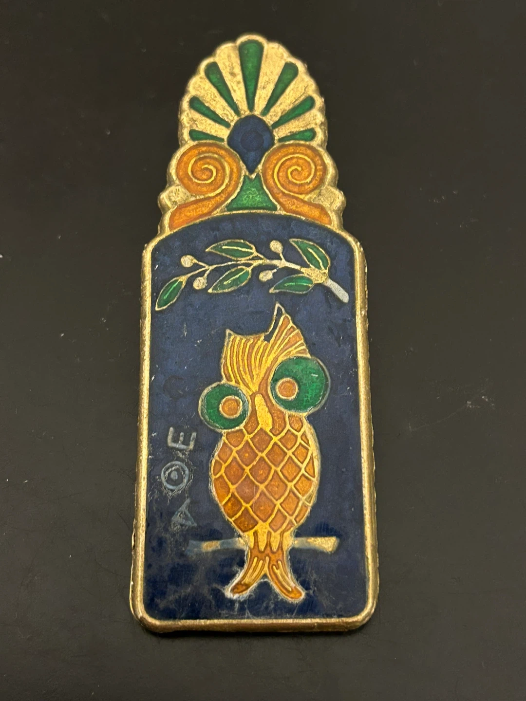 Vintage Greek Enamel Brass Clip 🏆